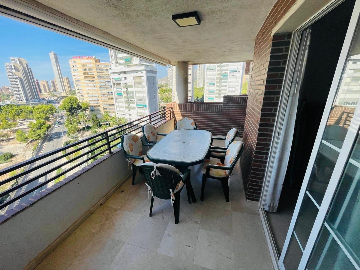 High-rise apartment in Benidorm, in the Poniente area, a very quiet area and less touristy than the Levante area.This home has a very spacious and bright living-dining room, a fully equipped independent kitchen, a gallery, 3 bedrooms, 2 of them double and 1 single, all with built-in wardrobes, 2 bathrooms, one of them en suite, and Finally, two terraces, one L-shaped, very large, which is accessed from the living room, and the other smaller one, which is accessed from the master bedroom.The urbanization has a community pool, tennis court, children's areas and garden areas. A numbered garage space is included in the price.It is located in an exceptional location, on the second line of the beach, just 2 minutes walk from Playa Poniente, a quiet, clean and spacious beach. It also has all kinds of necessary and leisure services in its surroundings, such as supermarkets, pharmacies, banks, restaurants, hospitals, the La Marina shopping center, schools, institutes, parks, etc.Don't miss this magnificent opportunity and book your visit now without obligation!