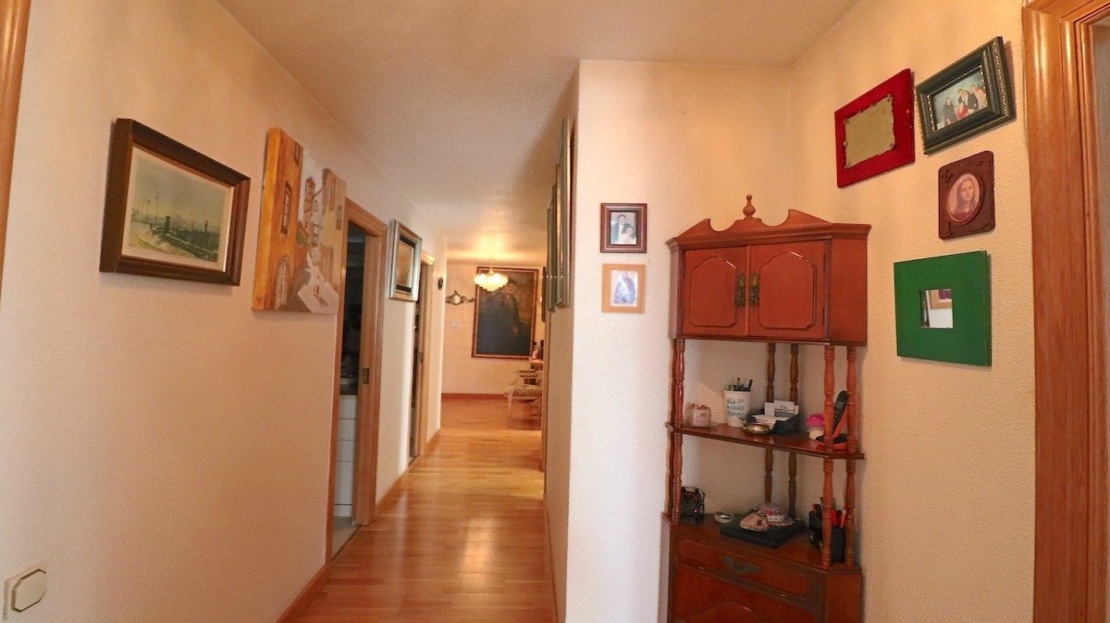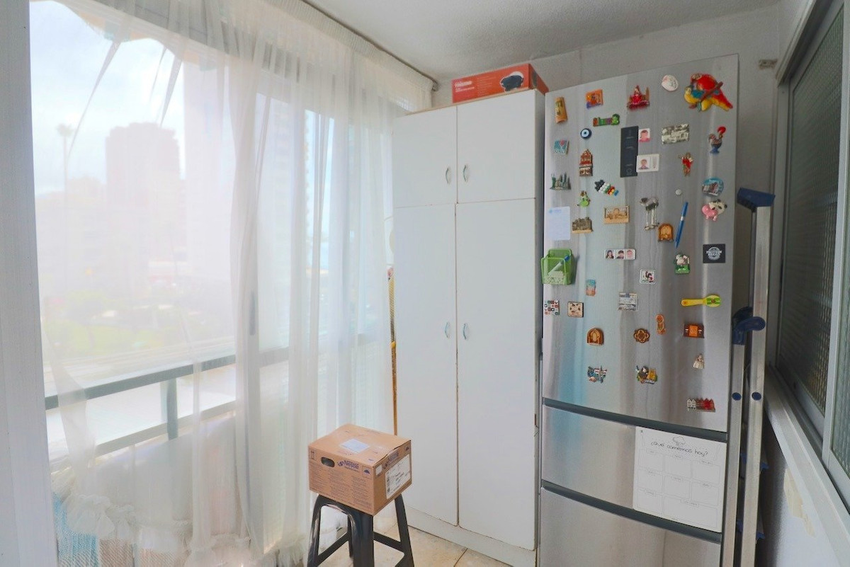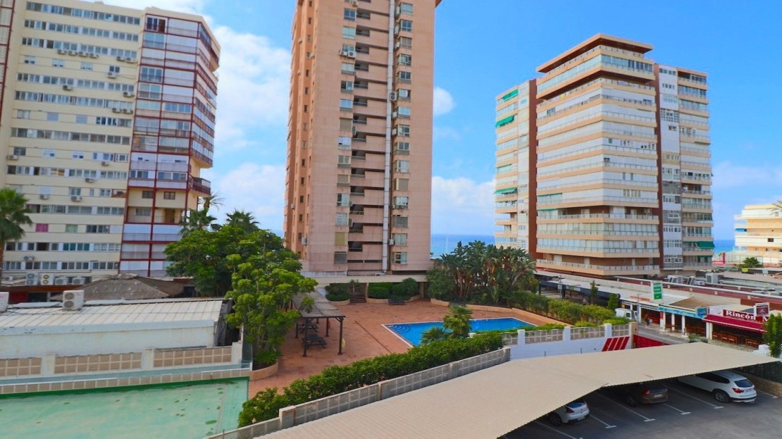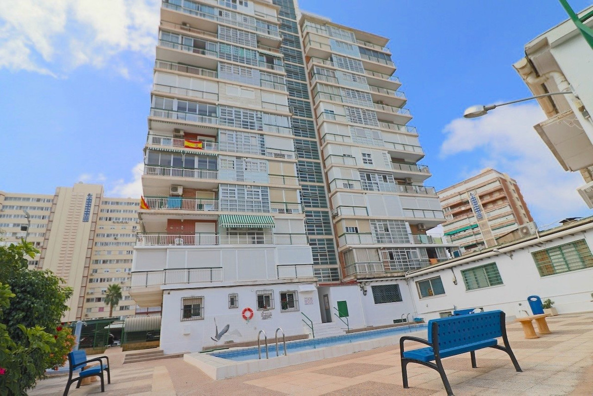 This apartment is located behind the buildings on the first line of Levante beach.~ ~ Privileged location, with slight sea views. In the triangular square of Benidorm.~ ~ The apartment has 3 large bedrooms and two bathrooms. The terrace has been glazed, making the living room and master bedroom larger, and gaining a large area that is currently used as a storage room, but if one of the walls is opened, it would gain much more space and light.~ ~ The building has a community pool and covered community parking.~ ~ For more information and visits do not hesitate to contact.~