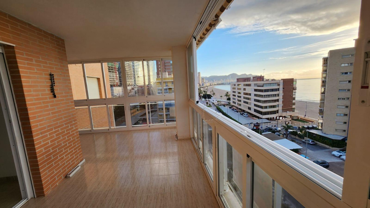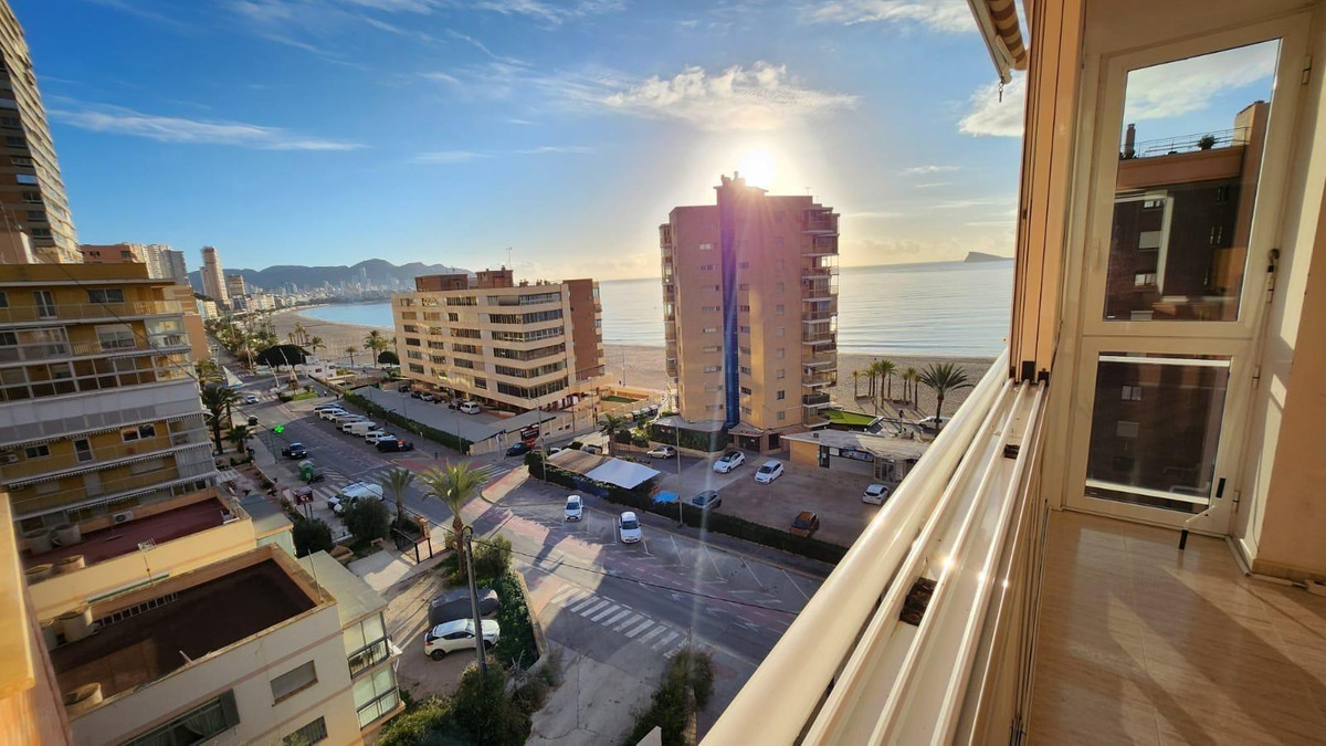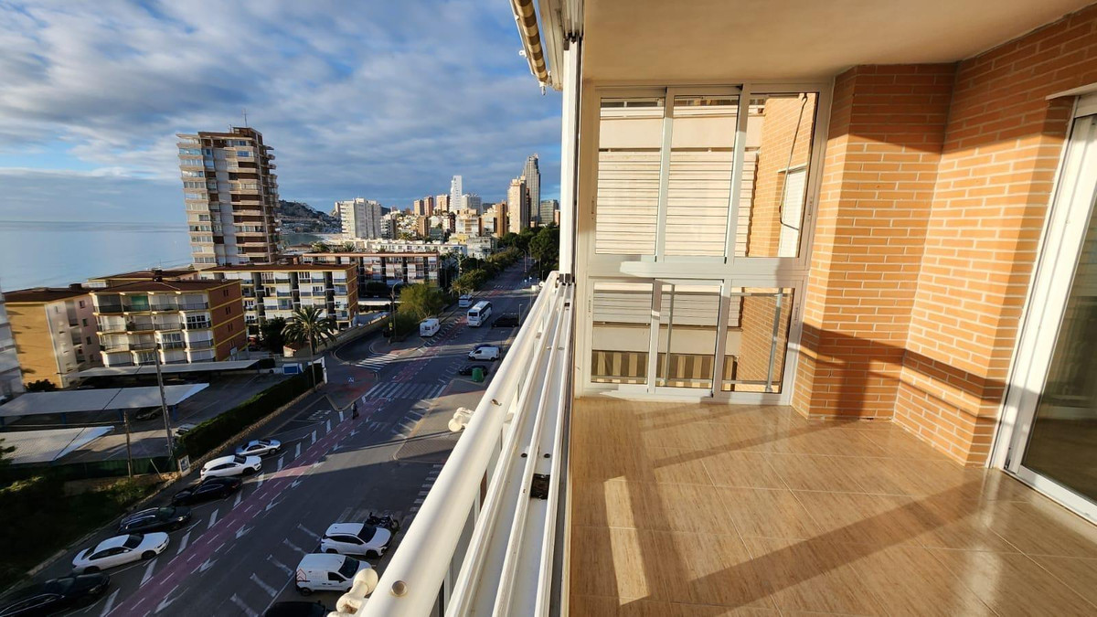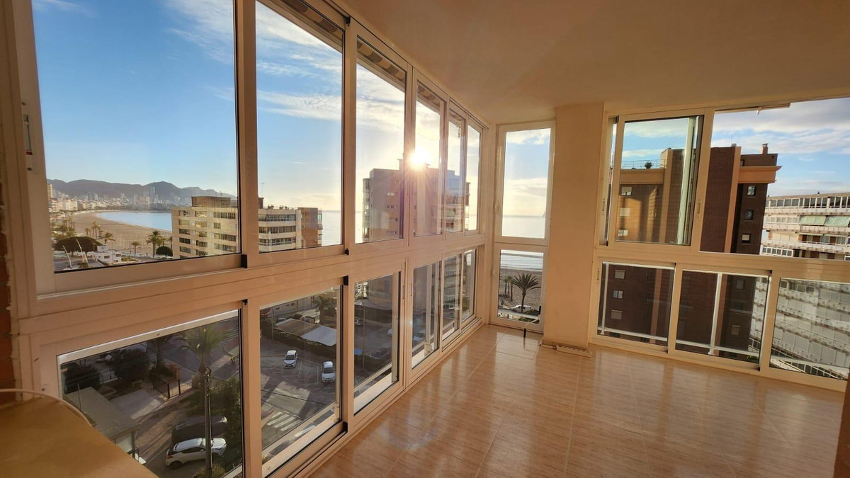 ✨ Spacious and bright apartment in Playa Poniente with sea views, Benidorm ✨This magnificent 105 m² apartment ???? is located on the 6th floor ???? of a modern building built in 2005????️, offering stunning panoramic views???? thanks to its corner location and excellent south orientation ☀️.???? Layout and features:- ????️ 3 bedrooms with built-in wardrobes, ideal for maximizing storage space.- ???? 2 bathrooms with window, ensuring ventilation and natural light.- ????️ Spacious and bright living-dining room with direct access to a glazed terrace ????, perfect for enjoying the sea and mountain views ????️ at any time of the year.- ????️ Fully equipped independent kitchen, with access to a practical gallery.???? Amenities and extras:✔️ Parking space included ???? in the price, in a private parking lot with assigned spaces.✔️ Community pool ????, ideal for cooling off on hot days.✔️ Privileged location: in the best area of Benidorm, a few meters from the spectacular Playa Poniente????️.✔️ Surrounded by restaurants ????️, supermarkets ???? and public transport ????, guaranteeing comfort and easy access to all services.A perfect home both to live all year round ???? and to enjoy a second home on the coast ????. Don't miss this opportunity and come visit it! ????