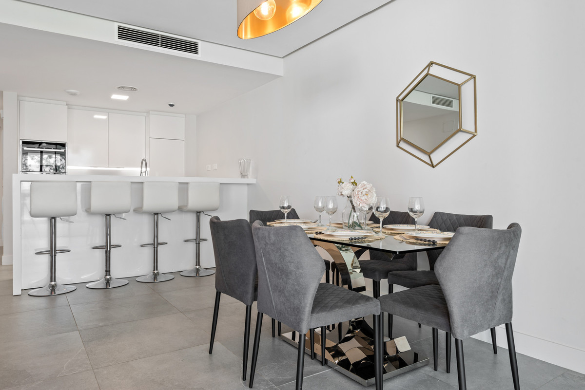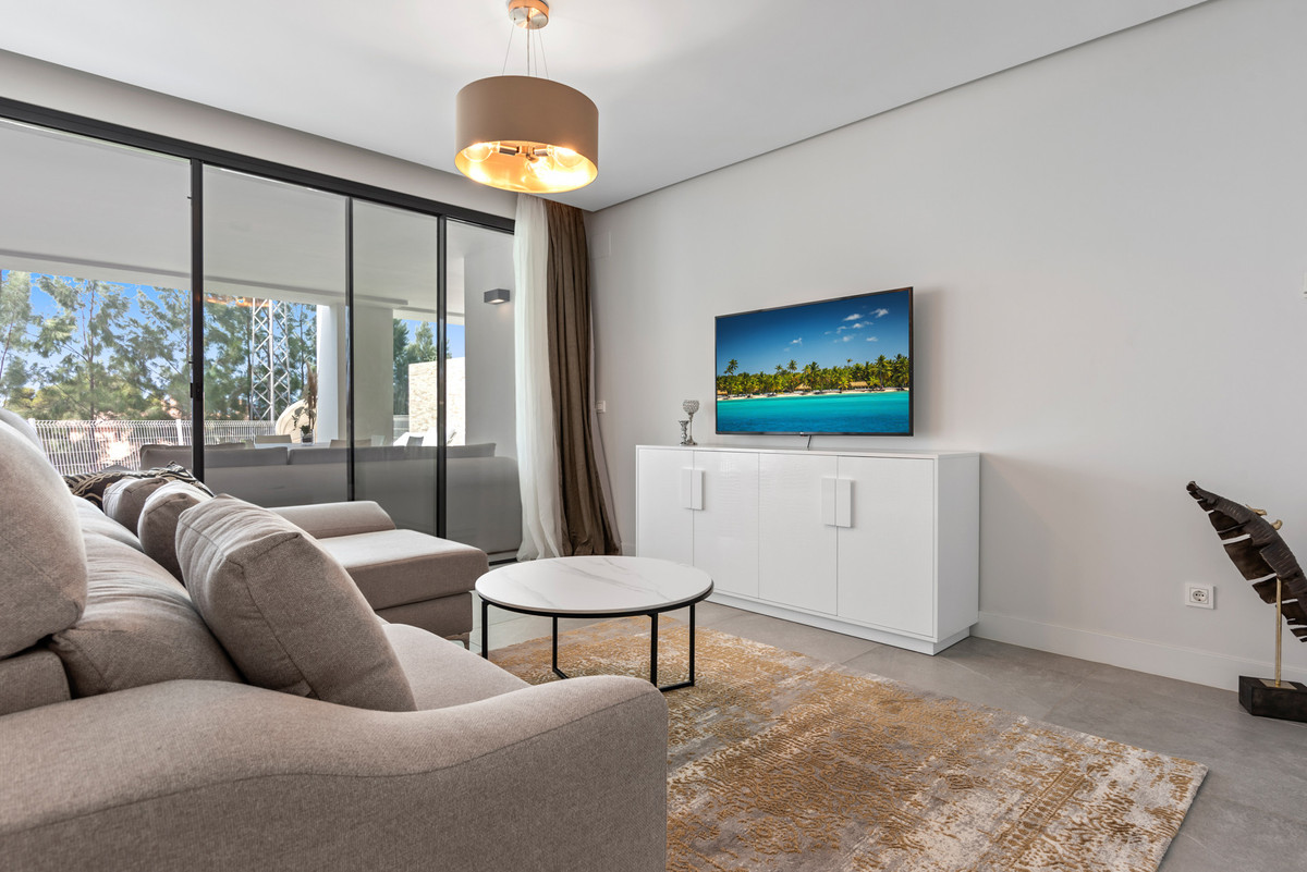 Brand new ground floor apartment nestled in a picturesque area near the golf course and port. This stunning residence boasts three spacious bedrooms, three washrooms. With contemporary design elements and high-quality finishes throughout, including sleek flooring and modern fixtures, this apartment offers a sophisticated living experience. Enjoy the tranquility of the surrounding landscape from the comfort of your own private patio or take advantage of nearby recreational amenities. Perfect for those seeking elegance and leisure in a coveted location.