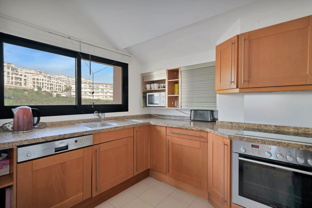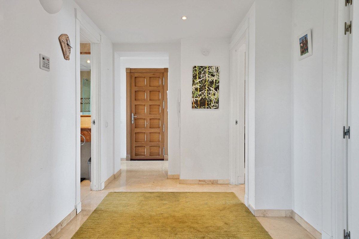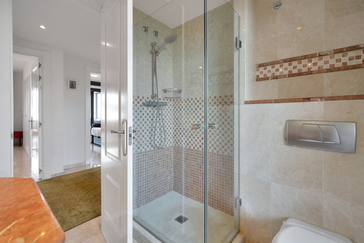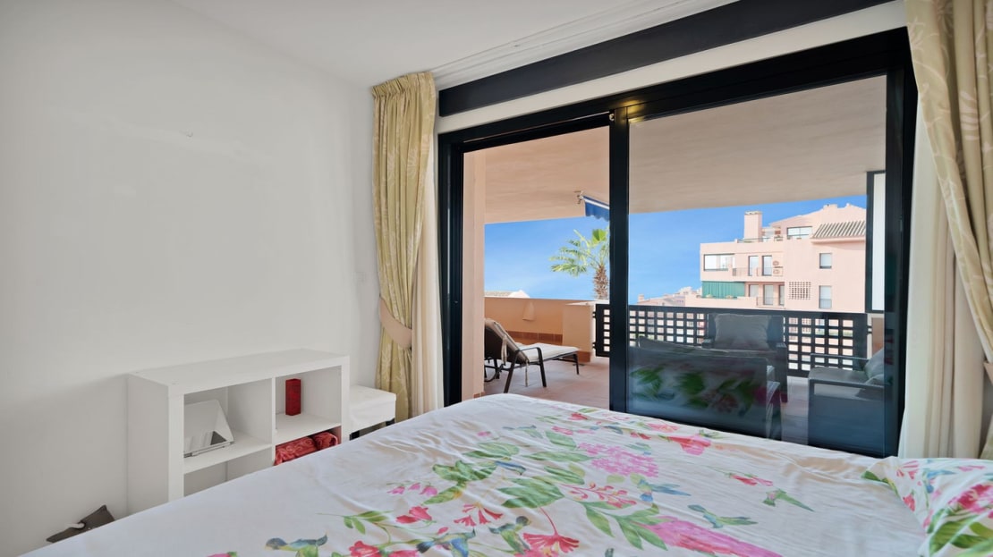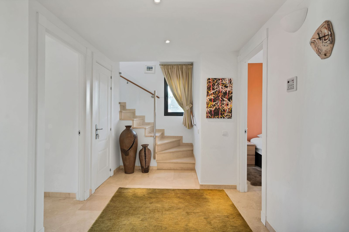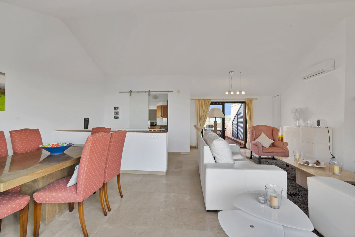 Stunning, spacious, and light duplex penthouse with sea and mountain views. The complex is very well-maintained, with two beautiful swimming pools and beautifully landscaped gardens surrounding it. Upon entering, there are three very spacious bedrooms and two bathrooms. Two of the bedrooms open onto a very large covered terrace with sea views. The upper floor has terraces on both sides, one with sea views and the other with mountain views. The living room is spacious with the option to use the fireplace. Due to the many windows and its location, the apartment is very bright. It is situated in the higher part of Calahonda, which ensures phenomenal views and a peaceful atmosphere. This apartment is ideal as a second home since it is close to golf courses, tennis clubs, and the beautiful coastline. Renting is prohibited, so it is always quiet, allowing you to enjoy the pool without any noise from renters. We would be happy to show you this apartment