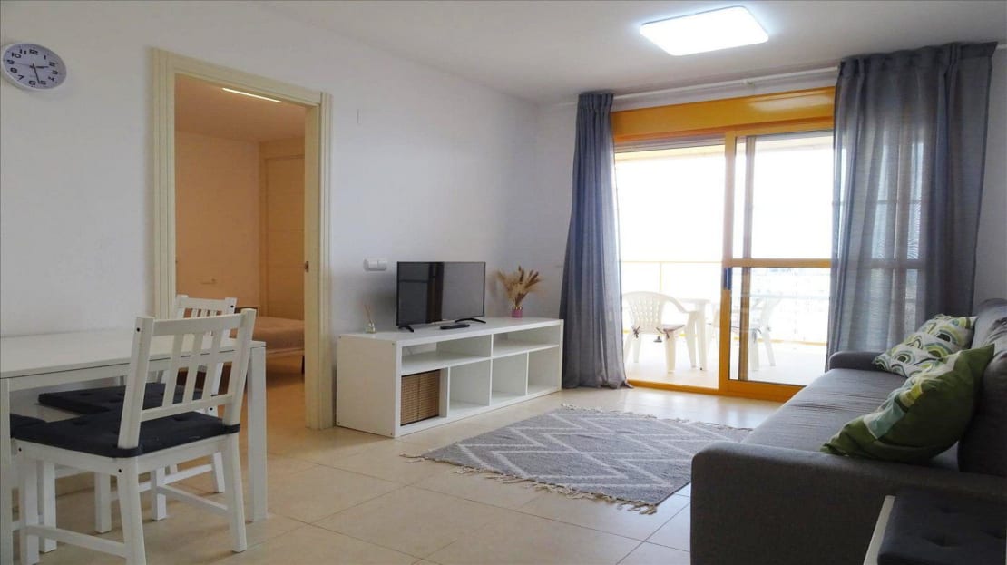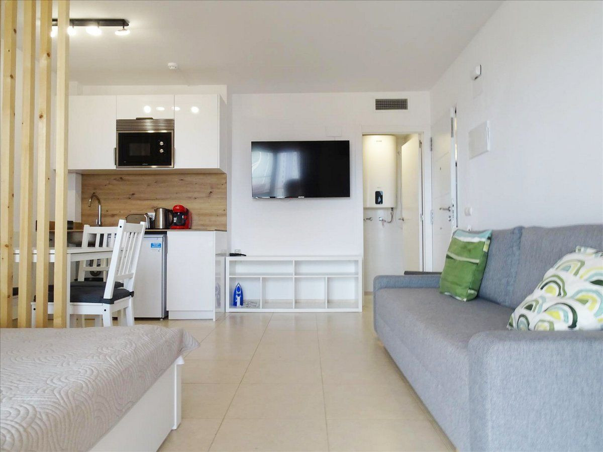 – Layout: This cozy one-bedroom apartment features a bright living room connected to a fully equipped open kitchen, creating a fluid and functional space. It also includes a bathroom, and the private terrace offers sea views, ideal for relaxing or enjoying sunsets.