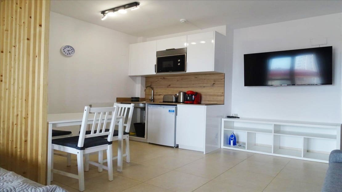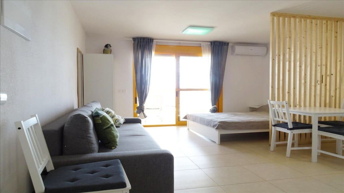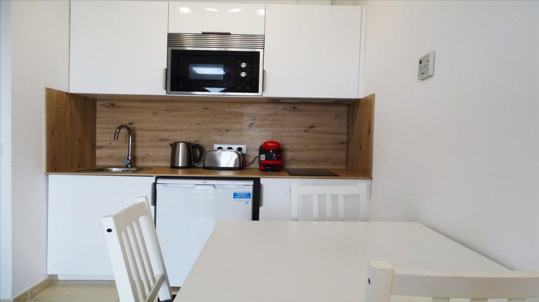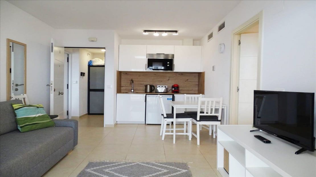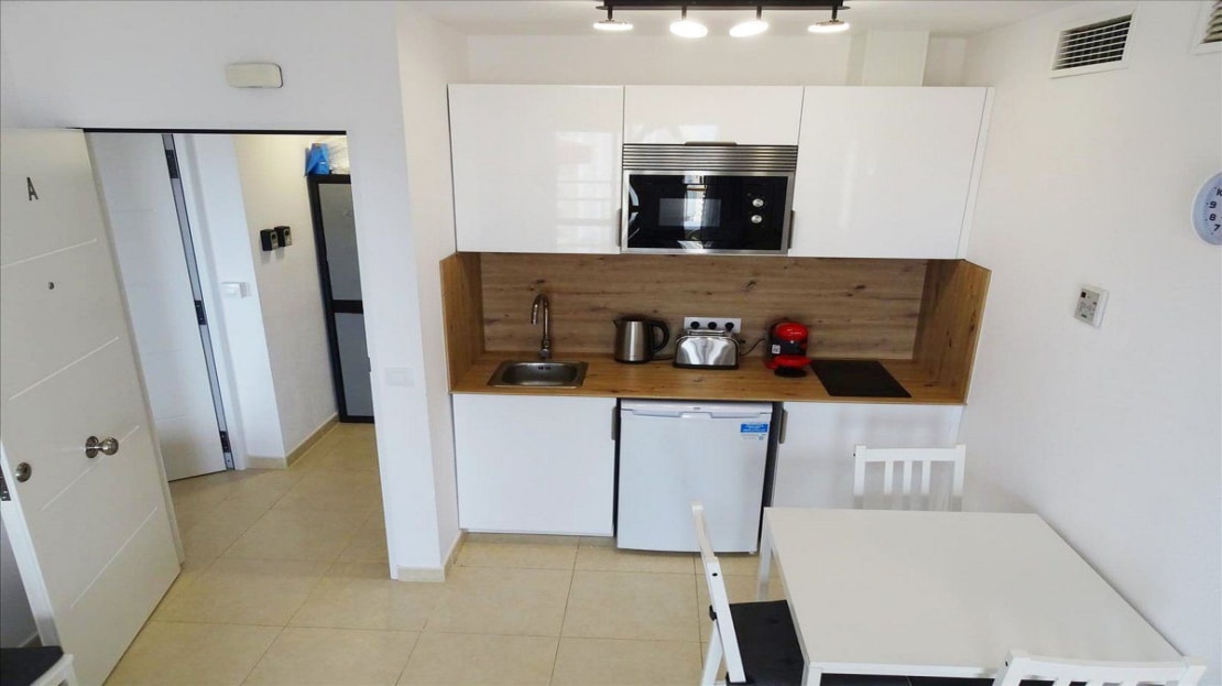 – Design: A studio perfect for those looking for a practical and well-utilized space. It has a fully equipped kitchen, a full bathroom, and a terrace with views of the sea and the famous rock. The open layout makes it ideal for renting to tourists or professionals seeking a comfortable and compact place.