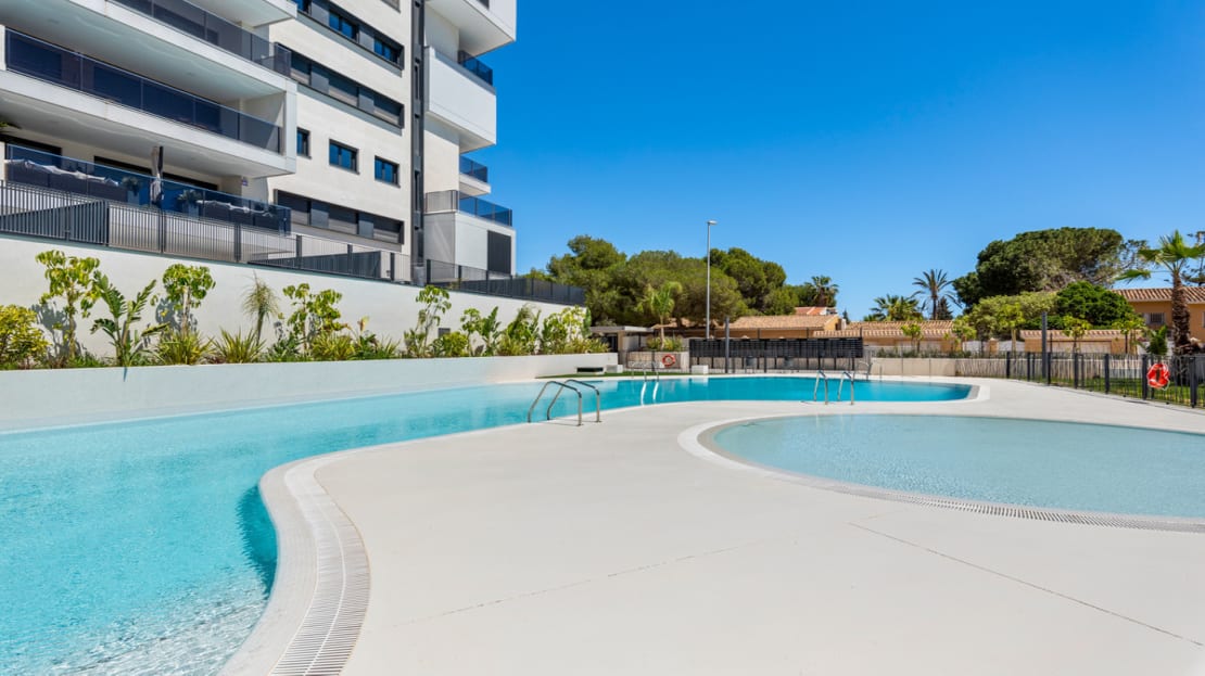 Enjoy the spectacular terrace of this modern new construction apartment in Campoamor (Orihuela Costa). With 3 bedrooms and 2 bathrooms, this home is the dream of anyone who wants to live in the Mediterranean paradise in a private urbanization near the sea and with great detail. The rooms are equipped with built-in wardrobes. For greater efficiency in the home, a modern installation of hot and cold air conditioning equipment has been planned through ducts with supply and return grilles in the living room and bedrooms. Temperature control is carried out through a thermostat located in the main room. The hot water system is generated through an innovative aerothermal system, which minimizes the use of fossil energy, which will produce great savings on your electricity bill.