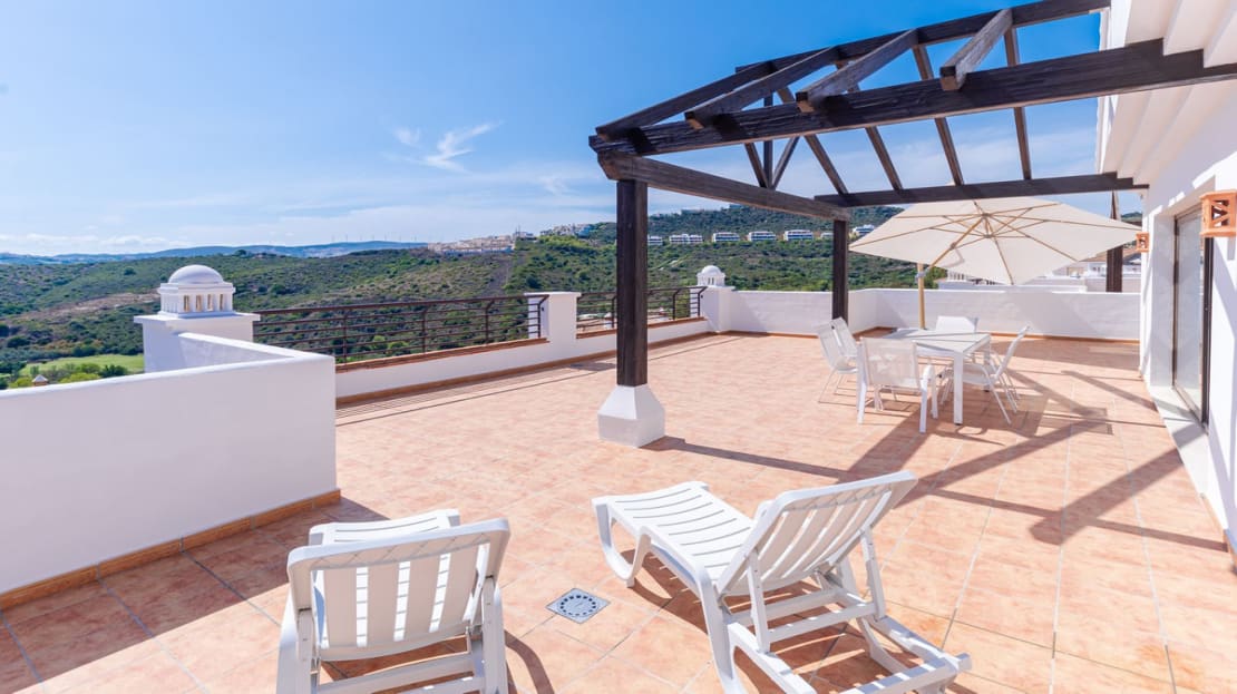 Quality penthouse with 100m2 terrace, inside an urbanisation with 3 swimming pools, green spaces, and mature tropical gardens.
