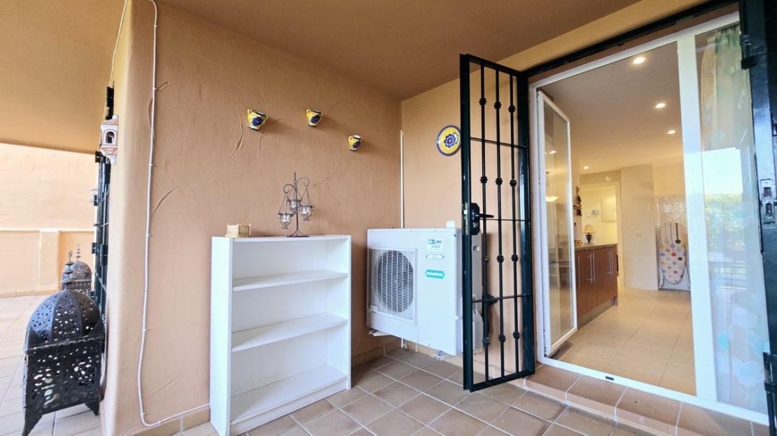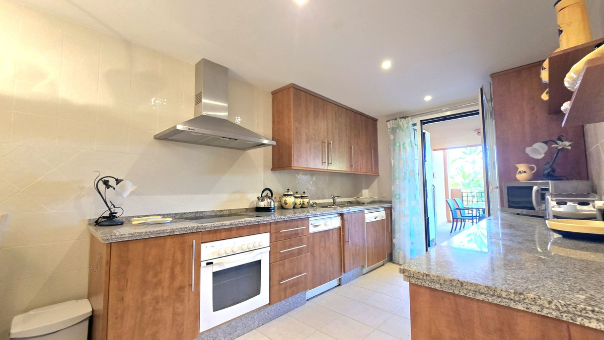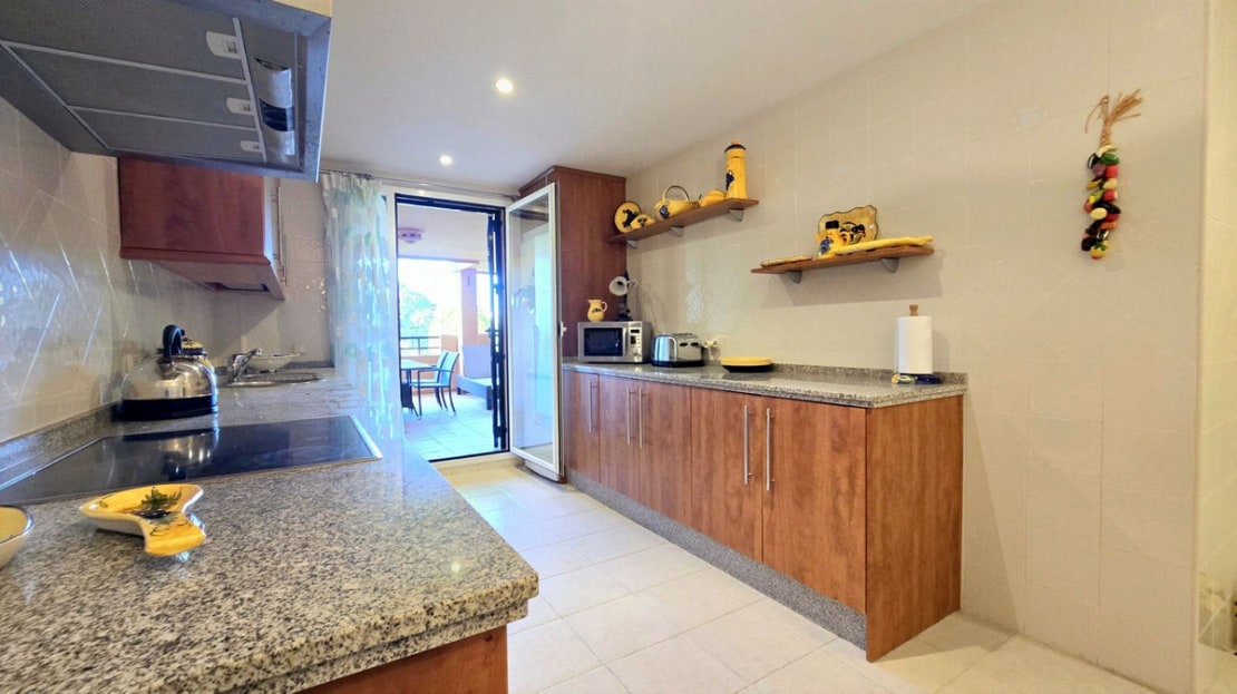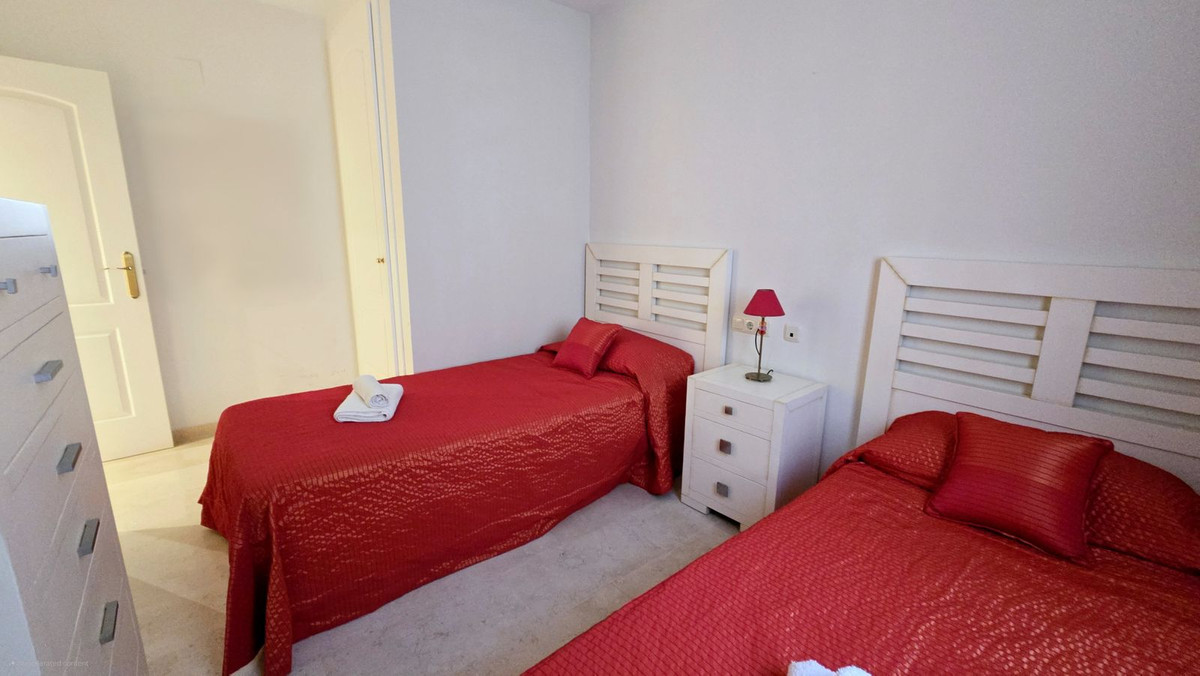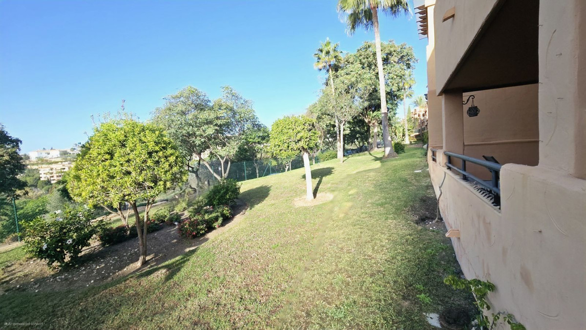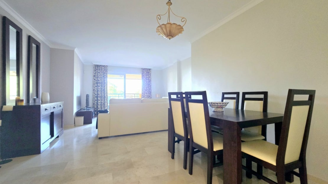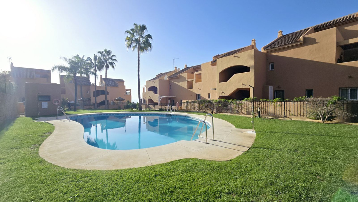This comfortable fully furnished, 3-bedroom corner apartment including 2.5 bathrooms. Quality marbel flooring throughout, including marble wall coverings in all bathrooms. The apartment is situated within walking distance to the famous Santa Maria Golf course and is close to many others. The apartment itself is in excellent condition and has been well loved and looked after by the owners. The terrace is huge and L shaped, with sun loungers, dining table and chairs, with the addition of a gate allowing access to a large green area. SW facing with sea views and not overlooked, so private and functional.