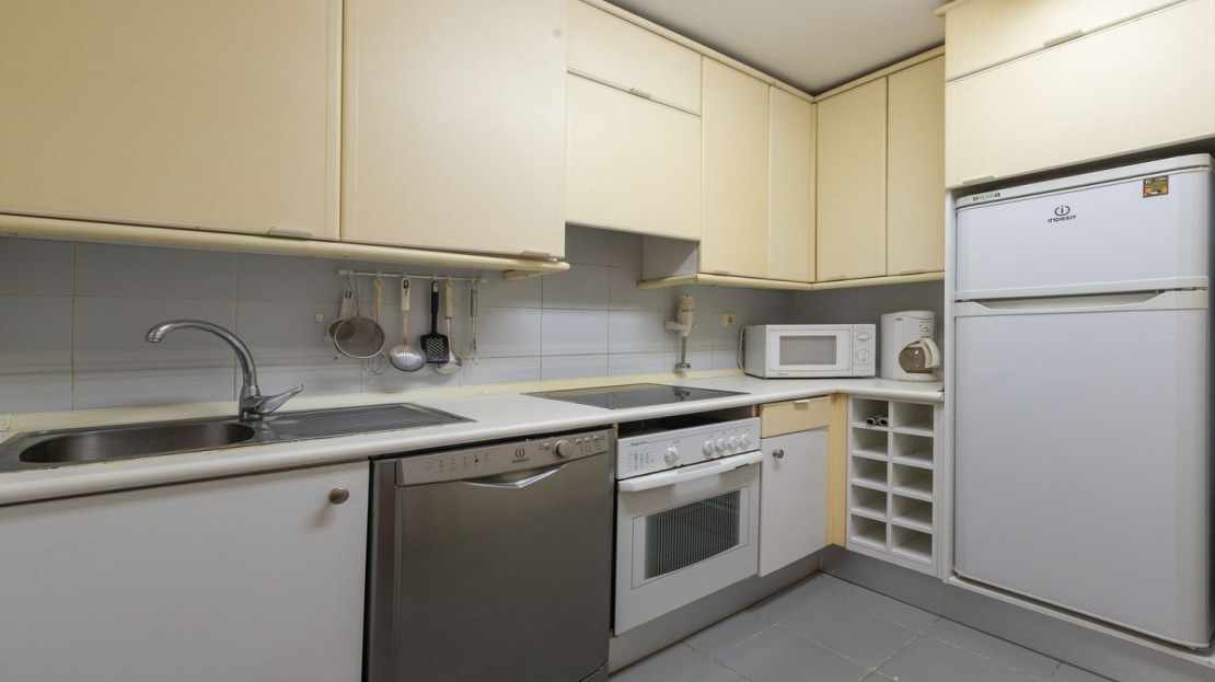 At the entrance of the apartment we find a hall, and a kitchen connected to a laundry room. The property also has three bedrooms and two bathrooms, one of them en-suite. A bright living room connects to the sunny terrace with beautiful open views towards the communal garden.
