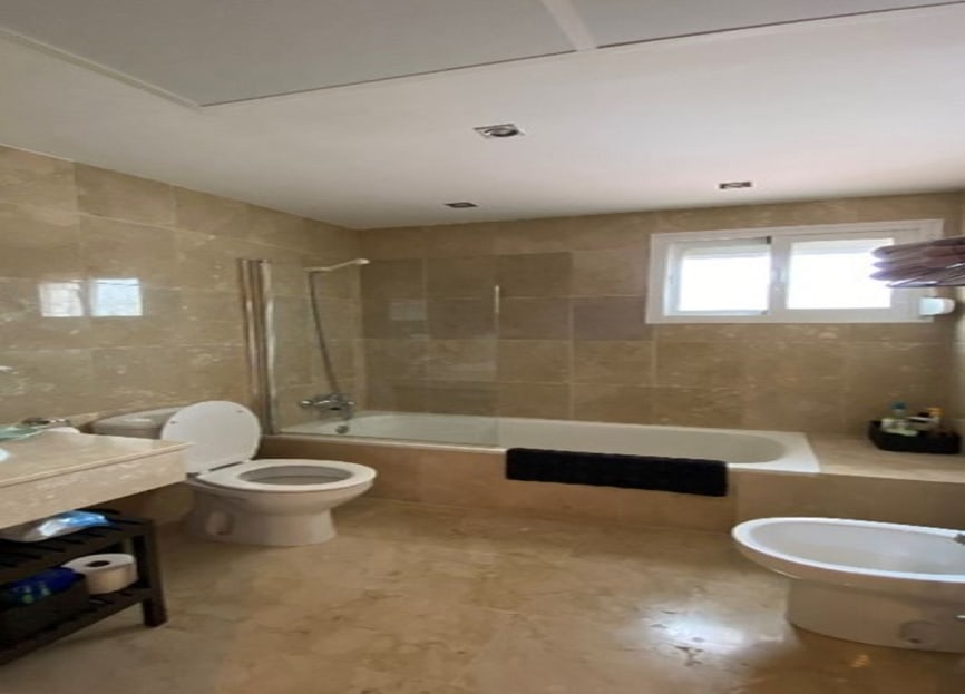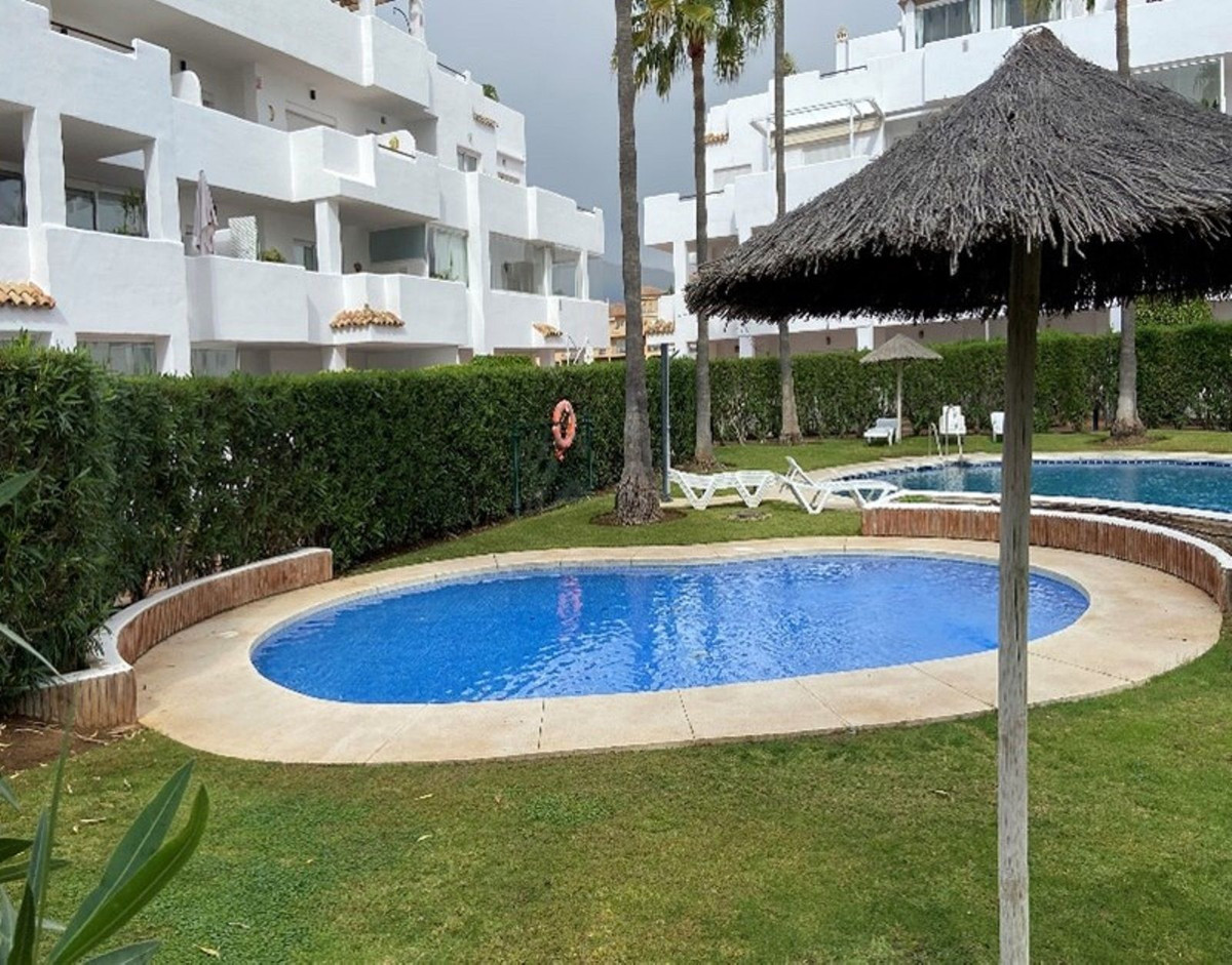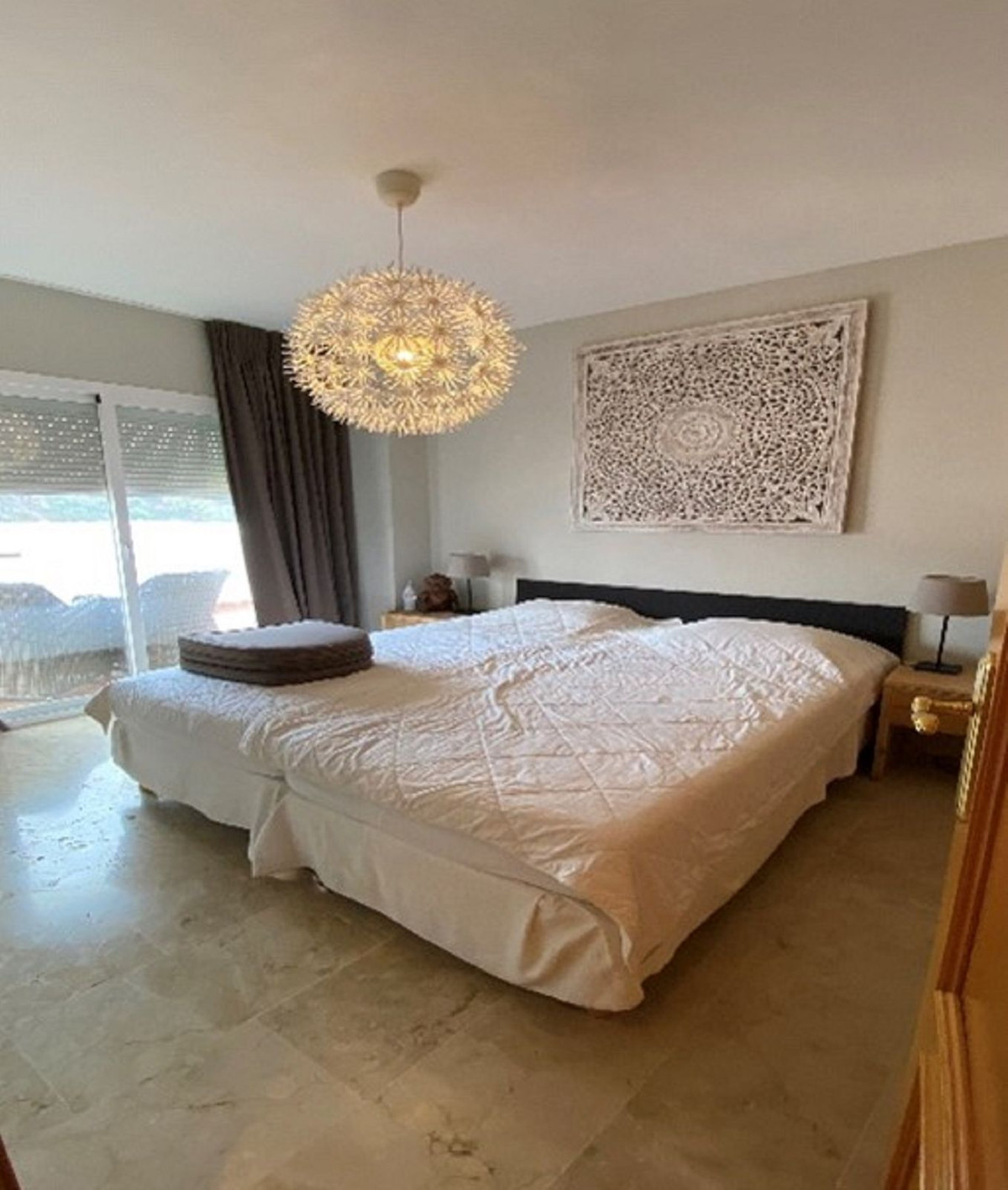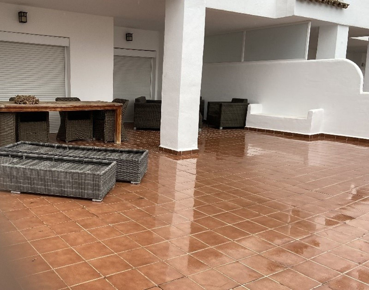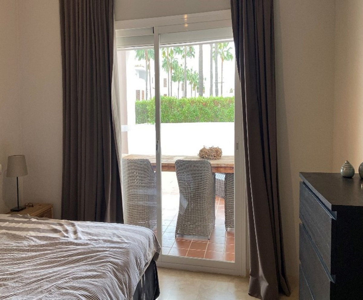 This spacious ground floor apartment with huge terraces is situated in the popular gated complex of La Resina Golf. It has a stylish décor and gives a bright impression of its open plan layout. The apartment consists of three bedrooms, two bathrooms, a large living room,connected to one of the large terraces with dining area and a fully equipted kitchen. Features include marble floors, New climate controlled air conditioning with cooling/heating.The master bedroom and living room are directly connected to the large terrace with the entrance to the beautiful communal gardens. The terrace faces south-east, meaning sun from early morning until late afternoon. La Resina Golf is a popular complex with lovely pool areas and large relaxation areas. With views over the Mediterranean Sea at the front and Selwo National Park at the back (with Selwo Aventura).La Resina Golf is located along the “New Golden Mile” which means proximity to everything while the area is peaceful and quiet. Selwo Aventura and the beach are just a few minutes drive away. Estepona, Puerto Banus and Marbella is just a 10-15 minutes drive away.