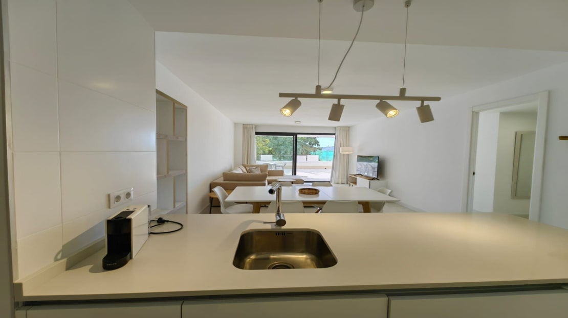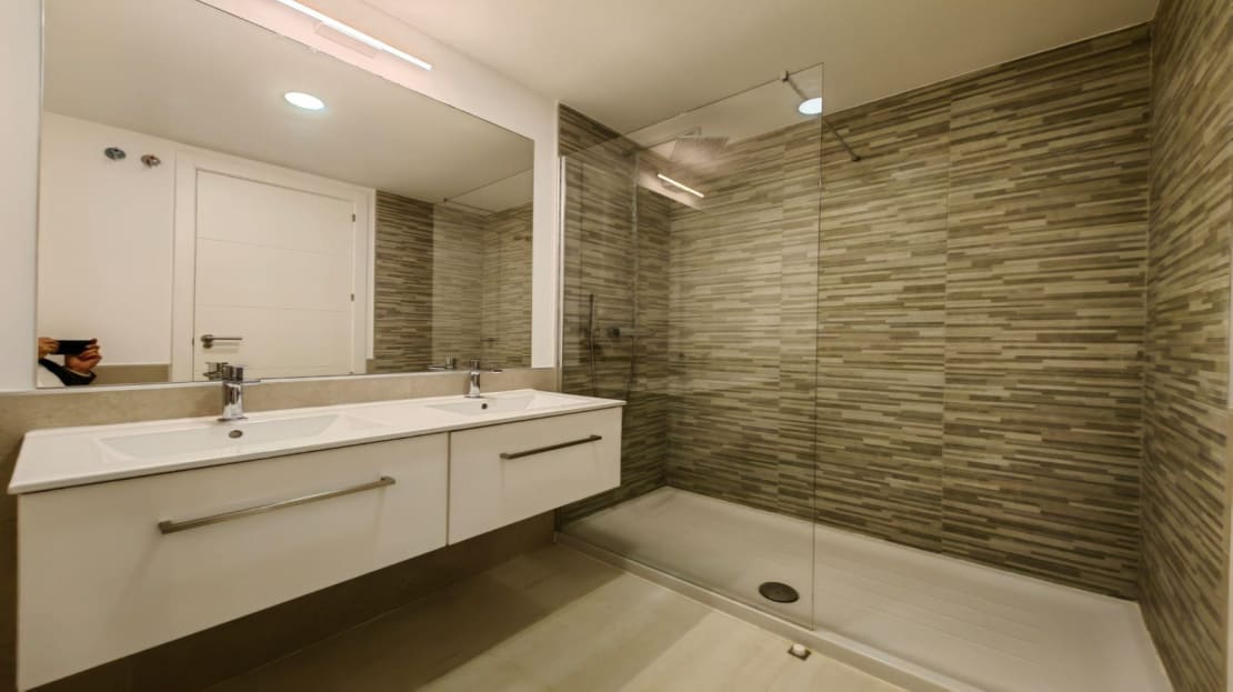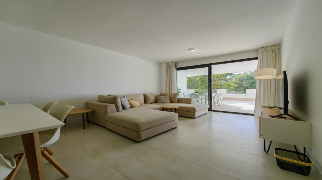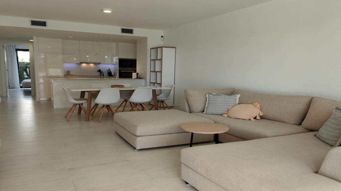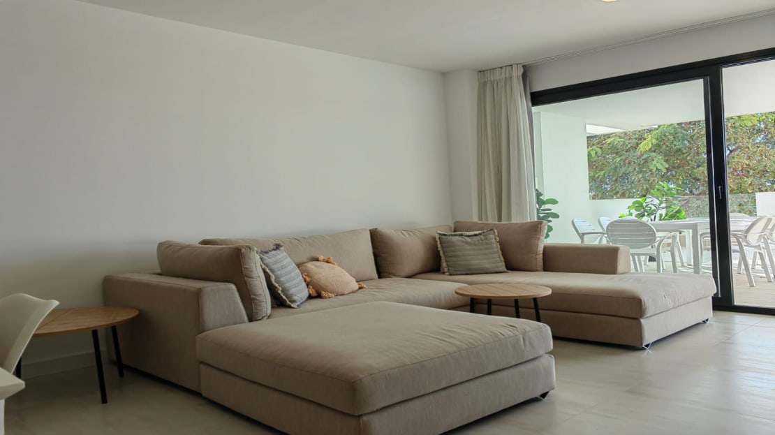 The apartment consists of a 3 bedrooms of which the main bedroom has an ensuite bathroom and separate walk-in wardrobe. The other two bedrooms share a modern bathroom and both bedrooms have their private access through a sliding door to their private garden area. the main bedroom leads onto a very large South facing Terrace.