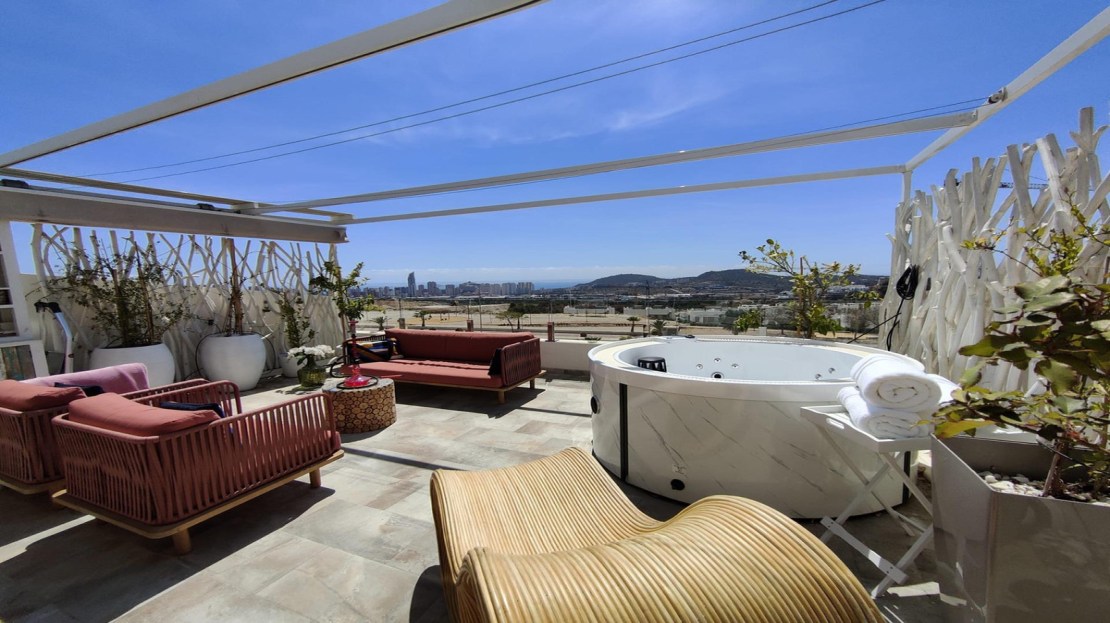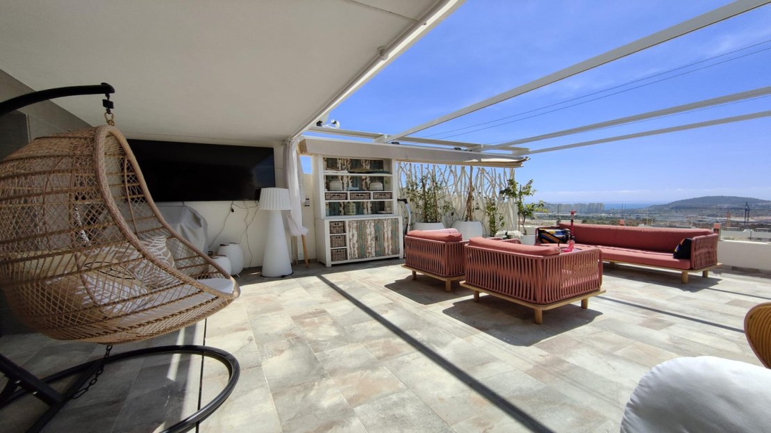 Excellent duplex for sale in a closed urbanization in Finestrat. The duplex has two floors. Including terraces and balconies, the total area is 188 m2. On the first floor of the duplex there is a kitchen, a living room, a bedroom, a wardrobe and two bathrooms fully equipped with furniture and appliances. On the second floor is the master bedroom with its own bathroom and a huge terrace. The duplex has a southern orientation, which means views of the sea and Benidorm.The urbanization has everything you need for a quality life and recreation: an outdoor pool, a children's pool, a heated indoor pool, a sauna, a jacuzzi, a large gym, several padel and tennis courts, a playground. The territory of the complex is under round-the-clock video surveillance and security.Three minutes from the duplex there is a large shopping area La Marina, where you will find everything you need for quality shopping: a shopping center with famous clothing brands, several supermarkets: Carrefour, Mercadona, Liddl, Aldi. Hardware stores, fast food restaurants and cafes, home improvement stores and gas stations.Benidorm is only 5 minutes away and Alicante is half an hour away by car, as is the airport.Convenient transport interchange, highly developed infrastructure, luxurious views and a comfortable residential complex – that's what you get by choosing this property.Write to us to arrange a visit and find out more details!