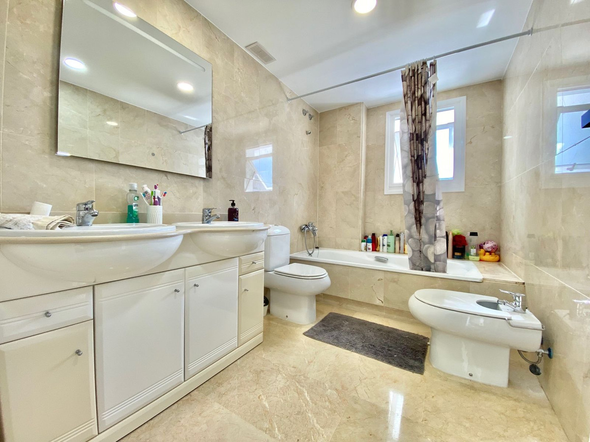 Corner apartment has 3 bedrooms, all with access to the terraces and 2 of them en suite, 3 bathrooms, kitchen, living room and 2 terraces.
