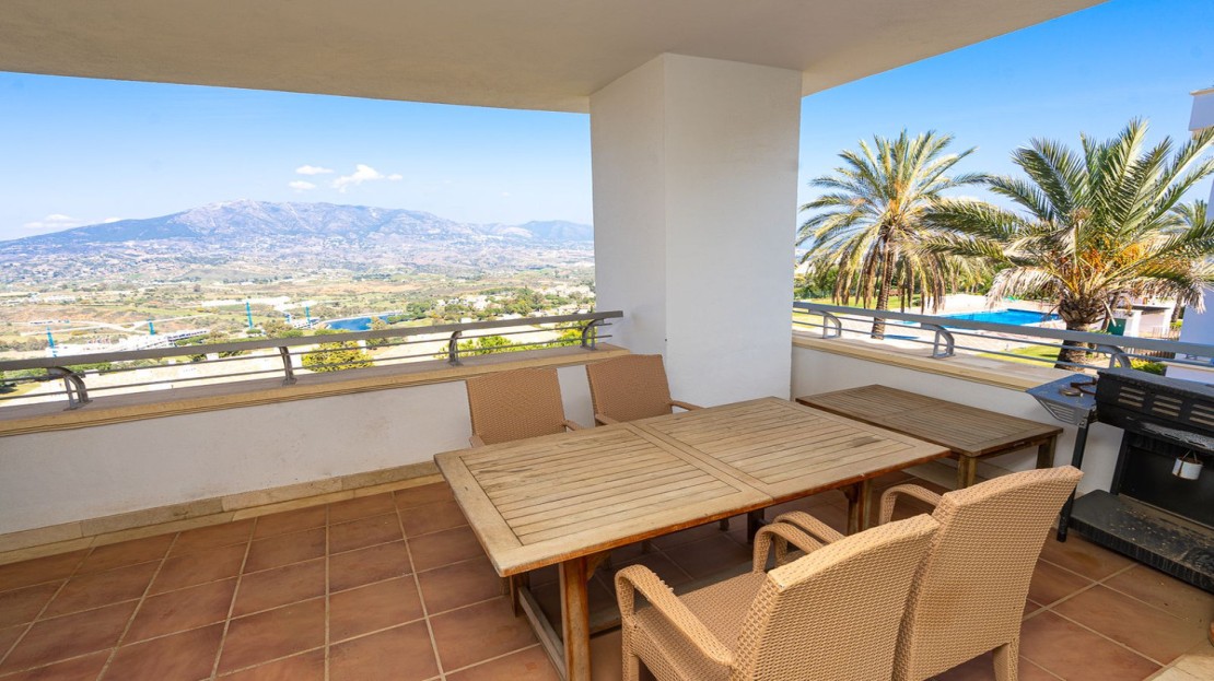 Quality apartment with panoramic mountain, sea and golf views located in La Cala Golf Resort with three 18-hole golf courses, Club House, Hotel and Spa, 24-hour security and part of a private urbanization with communal pools and gardens, perfectly integrated into the environment. This spacious apartment consists of entrance hall, living-dining room, fully equipped kitchen and adjacent laundry room , 3 bedrooms , 3 bathrooms. Luxury finishes, marble floors, hot and cold air conditioning, motorized blinds and fully lined wardrobes. Parking space in underground garage, elevator, storage.