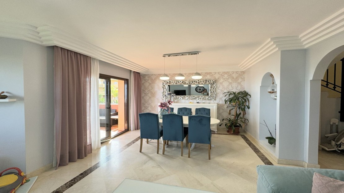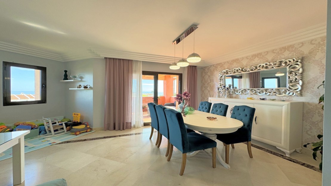 Discover this spectacular DUPLEX PENTHOUSE with spacious interior areas and PANORAMIC SEA VIEWS, located in one of the most charming areas of Manilva, just minutes from the prestigious Puerto de la Duquesa and Sotogrande. This property features two magnificent terraces, perfect for enjoying the beauty of the surroundings and the stunning views of the Mediterranean.