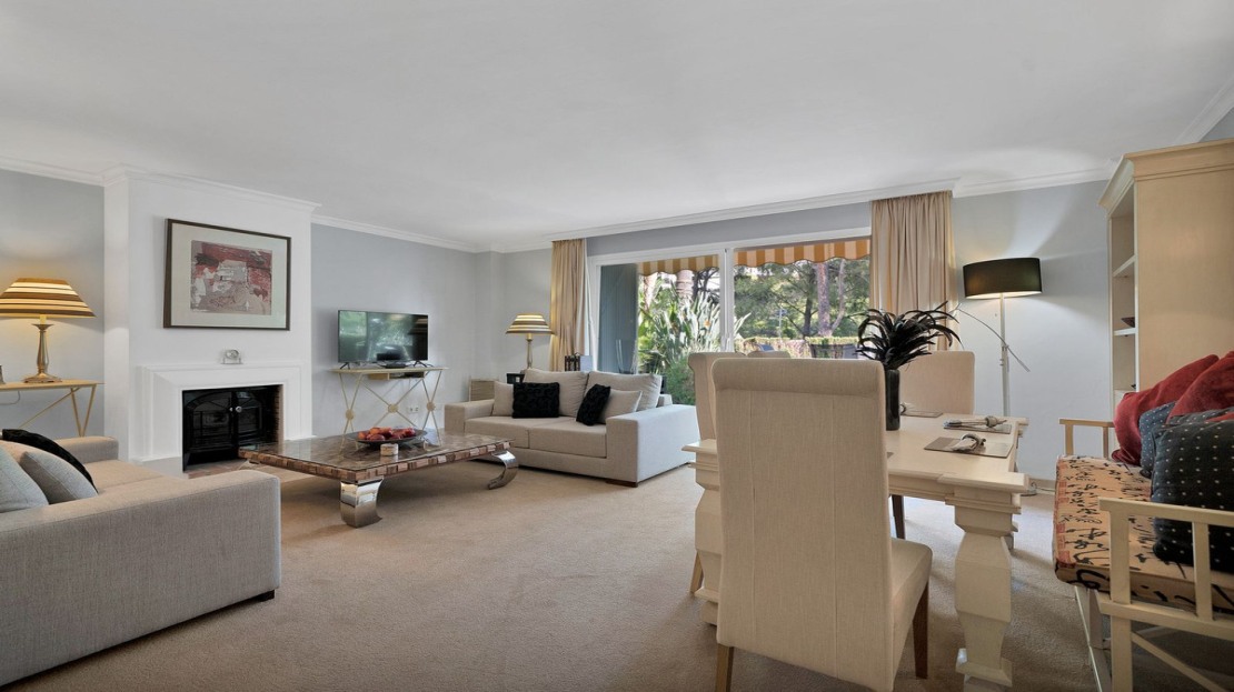 Nice ground floor duplex apartment located in the prestigious El Soto de la Quinta urbanization in Benahavis. With spacious, light-filled rooms and top-quality finishes, it offers comfort and elegance throughout. The living and dining area is a highlight, featuring large glass doors that lead out to a private terrace and garden, boasting spectacular views of the golf course.