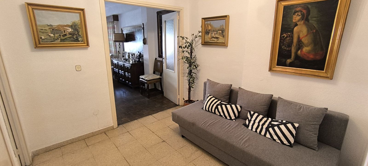 Discover a unique opportunity to own a spacious apartment in the heart of Marbella Centro, perfectly situated just minutes from the sun-kissed beach, the bustling Boulevard, and the enchanting Old Town with its iconic Plaza de los Naranjos. This sixth-floor gem offers a generous 124 m² of space, featuring three well-sized bedrooms, a main bathroom, a convenient guest toilet, and a separate kitchen. The expansive entrance hall seamlessly flows into a large living-dining area, which opens onto a sunlit terrace, perfect for enjoying the southern orientation.