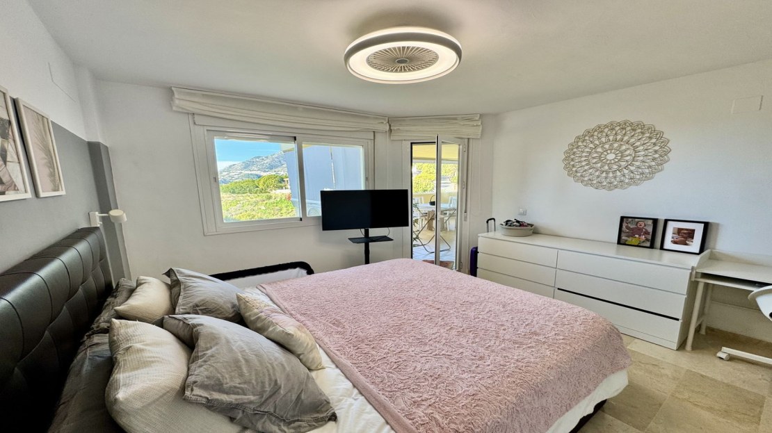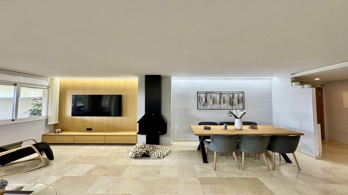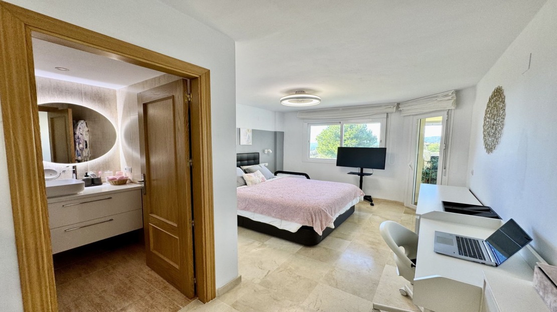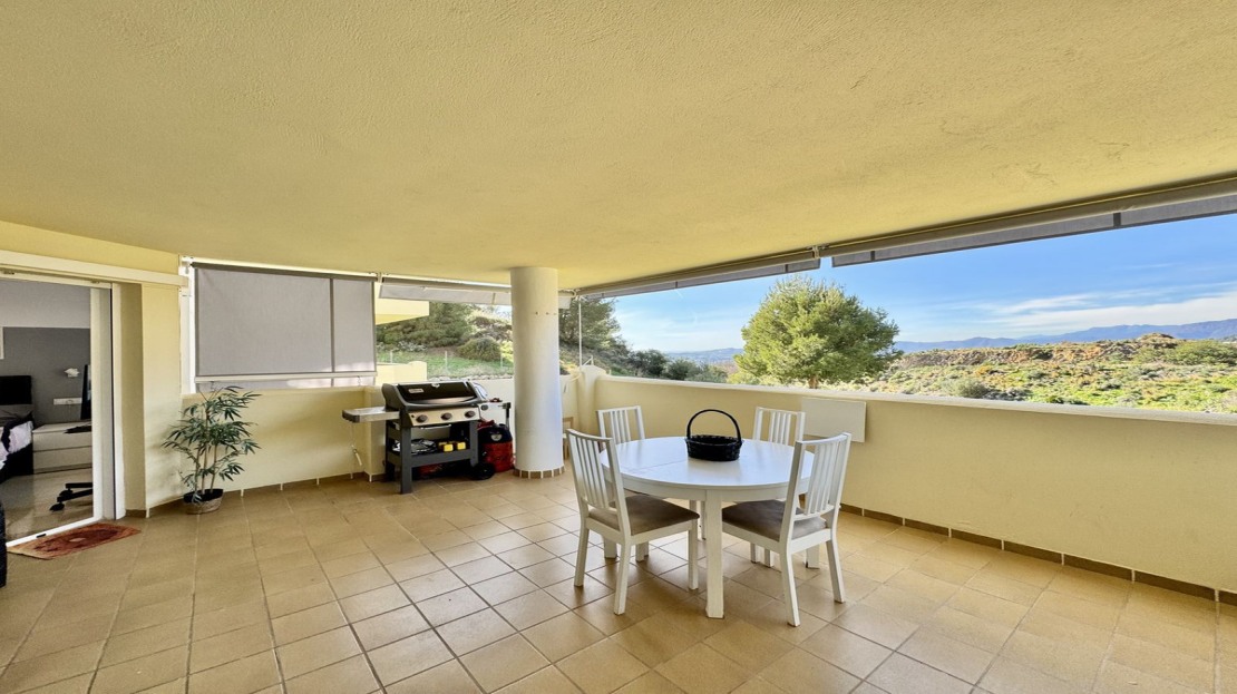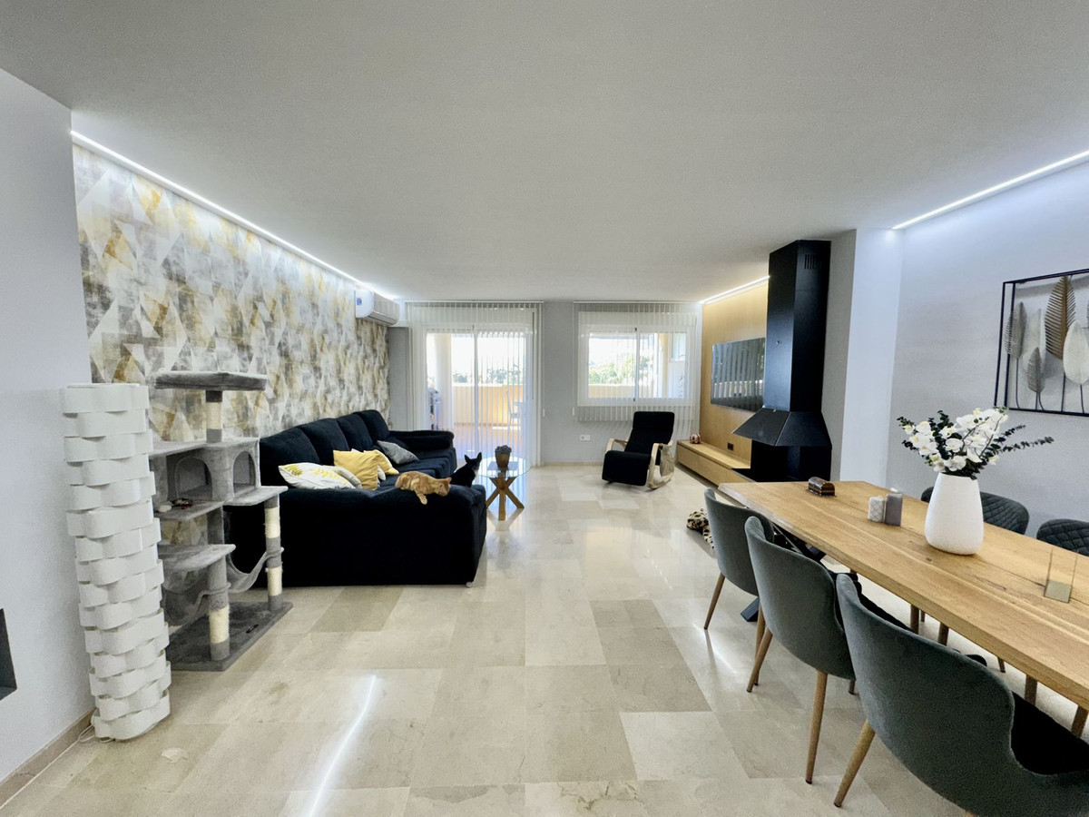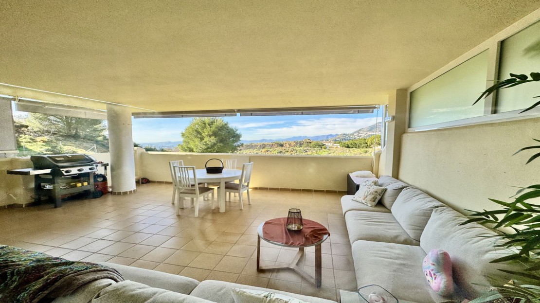 The flat has 3 spacious bedrooms, all with built-in wardrobes and capacity to adapt to any need. The 2 bathrooms, one of them en-suite, have been renovated with quality finishes. There is also a guest toilet, which offers comfort and privacy. The very spacious living room integrates perfectly with the open plan kitchen, creating an ideal environment for both everyday living and entertaining. The terrace is another of the property's great attractions, with a large 28m²º surface area and facing the afternoon sun, making it the perfect place to relax while enjoying the unobstructed views of the mountains. The marble floors bring a timeless elegance to the entire flat, while the double-glazed windows guarantee excellent thermal and acoustic insulation. Furthermore, the property includes a parking space in the price, providing convenience and security in the area. The urbanisation is very well maintained, which contributes to a pleasant and peaceful environment.
