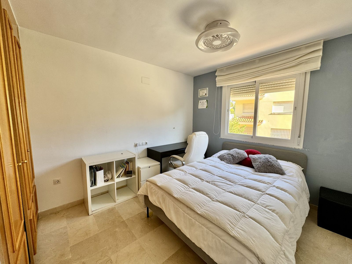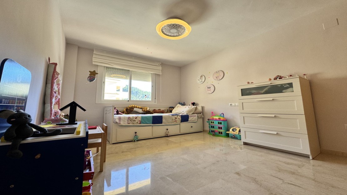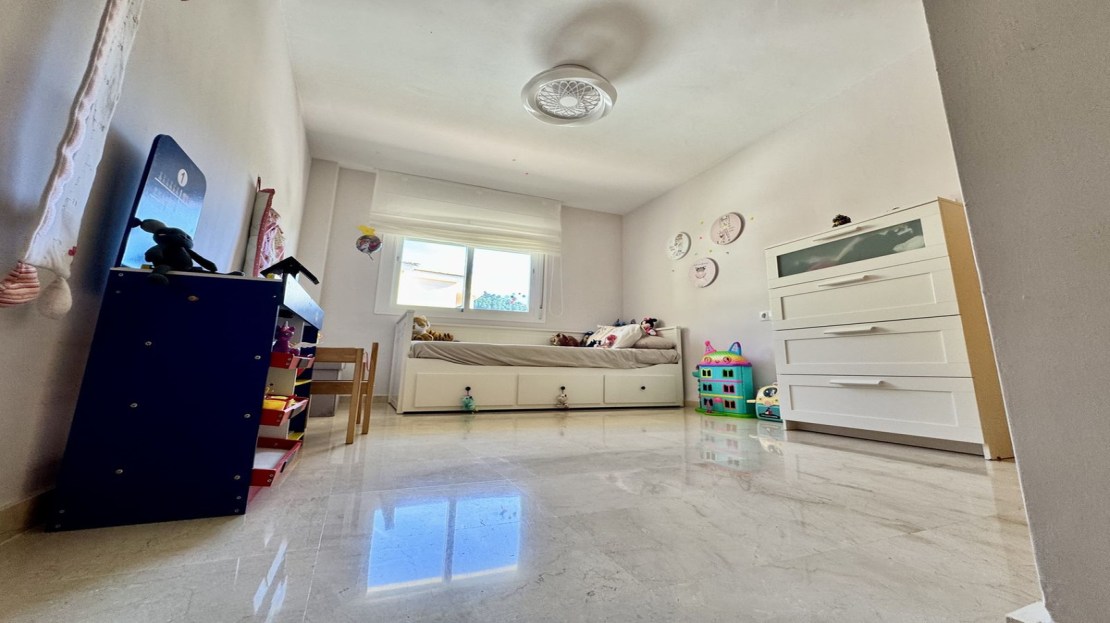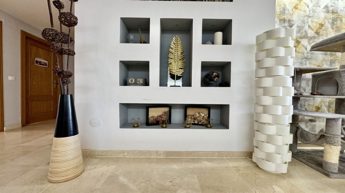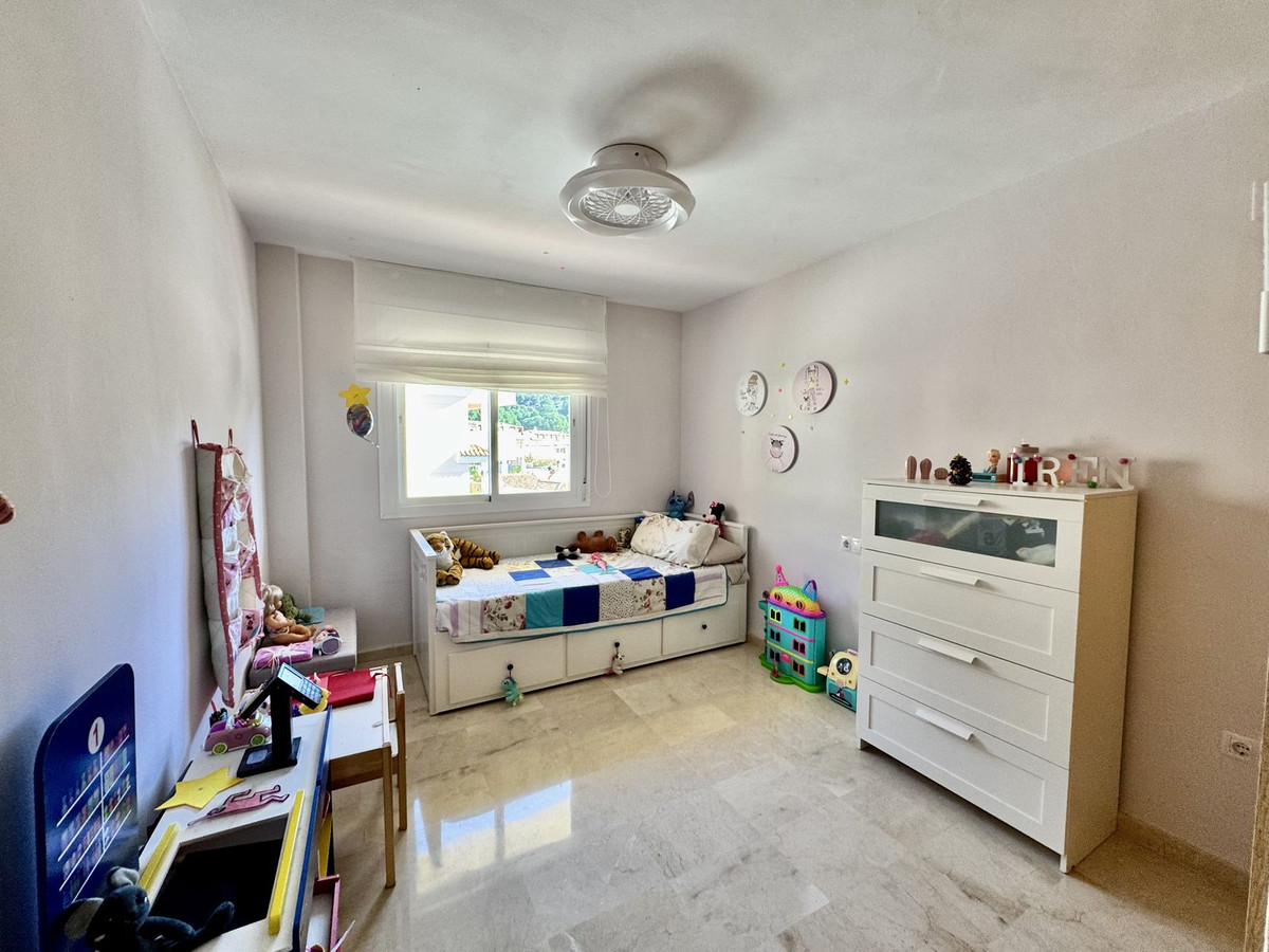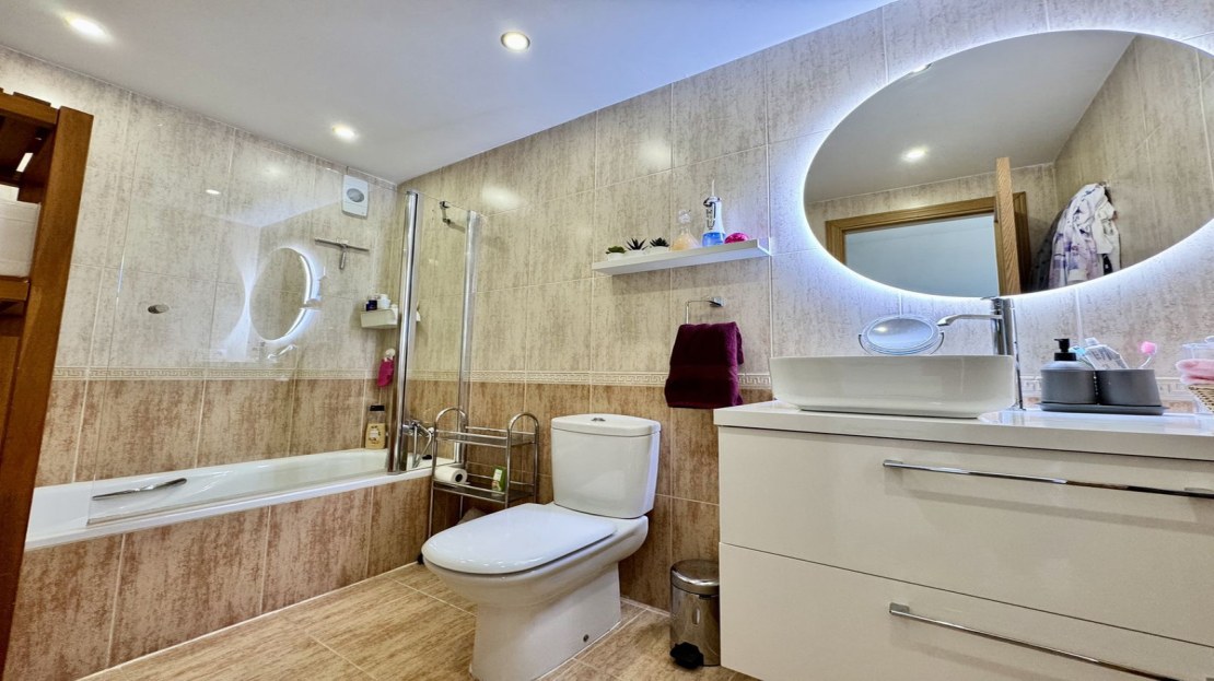 The flat has 3 spacious bedrooms, all with built-in wardrobes and capacity to adapt to any need. The 2 bathrooms, one of them en-suite, have been renovated with quality finishes. There is also a guest toilet, which offers comfort and privacy. The very spacious living room integrates perfectly with the open plan kitchen, creating an ideal environment for both everyday living and entertaining. The terrace is another of the property's great attractions, with a large 28m²º surface area and facing the afternoon sun, making it the perfect place to relax while enjoying the unobstructed views of the mountains. The marble floors bring a timeless elegance to the entire flat, while the double-glazed windows guarantee excellent thermal and acoustic insulation. Furthermore, the property includes a parking space in the price, providing convenience and security in the area. The urbanisation is very well maintained, which contributes to a pleasant and peaceful environment.