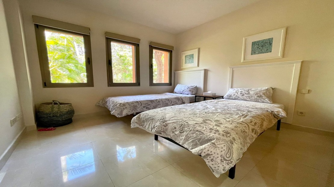 Nestled in the heart of the renowned New Golden Mile in Estepona, this stunning ground-floor apartment epitomizes high-end living with its exceptional build quality, serene community, and modern luxuries. Thoughtfully designed with spaciousness in mind, this residence offers three beautifully appointed bedrooms and two luxurious bathrooms, making it perfect for families or those who appreciate generous living space.