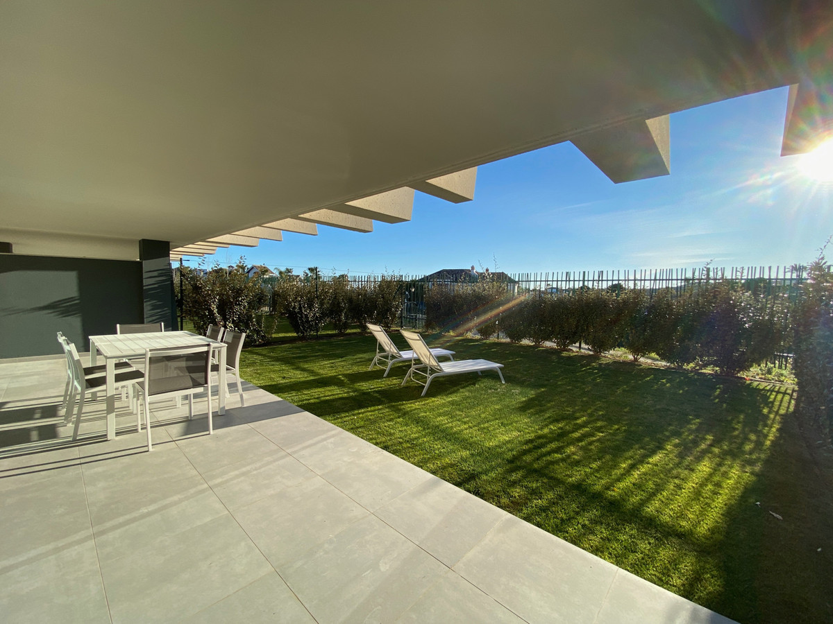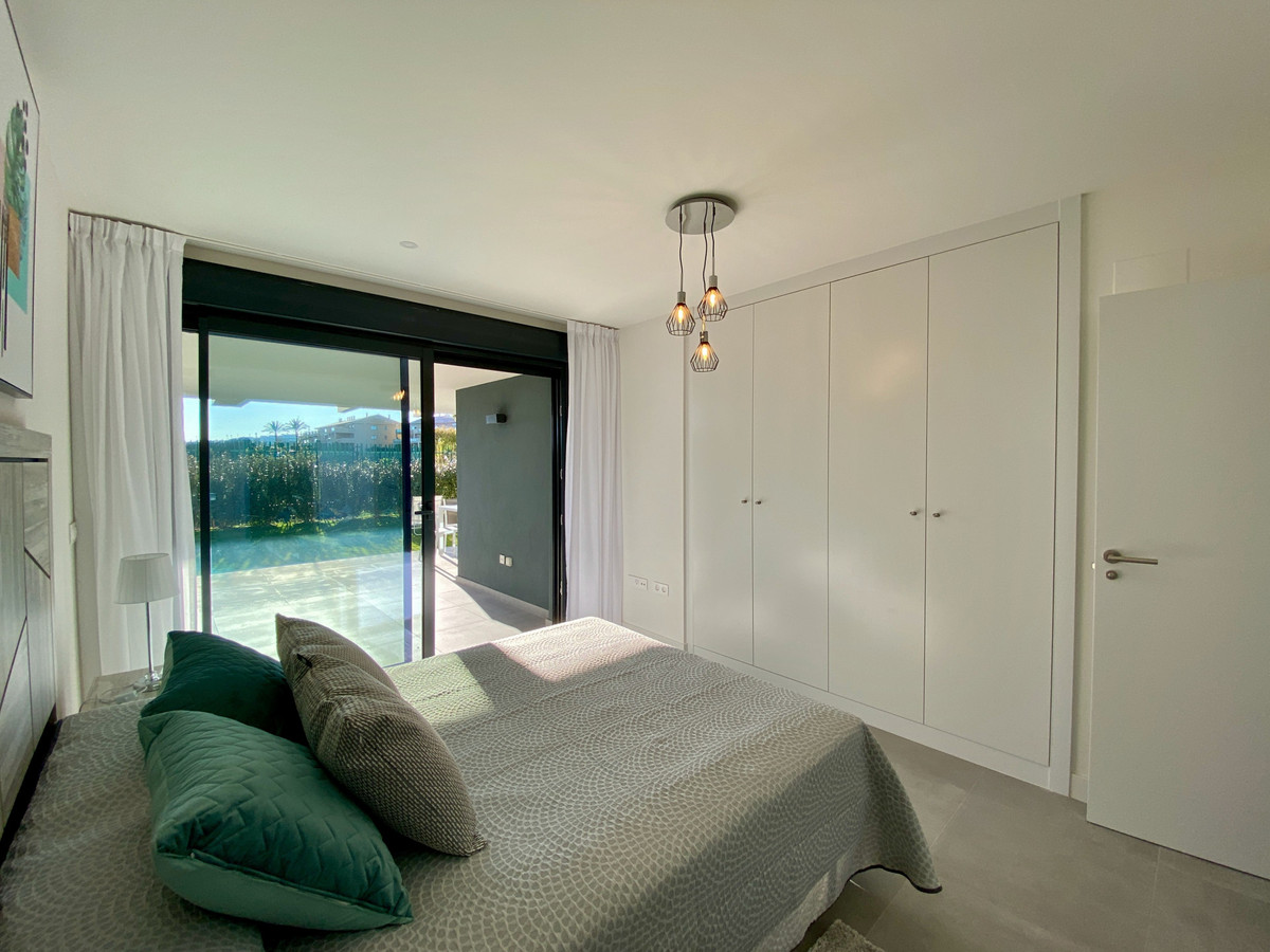 This is a fantastic opportunity to acquire a key ready Garden Apartment in the renowned Oasis 325, in Estepona. Featuring a bright and open living space enveloped with light which immediately welcomes you upon entering the apartment. There is a semi-covered terrace of 32m2 and a private grass garden of 67m2. The kitchen is modern and fully equipped, with a separate laundry/storage room and two spacious guest bedrooms with built-in wardrobes. The master bedroom has an en-suite bathroom and opens directly onto the garden.