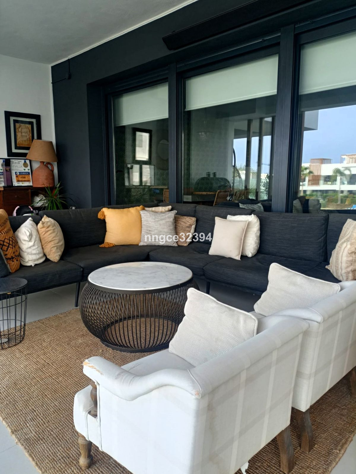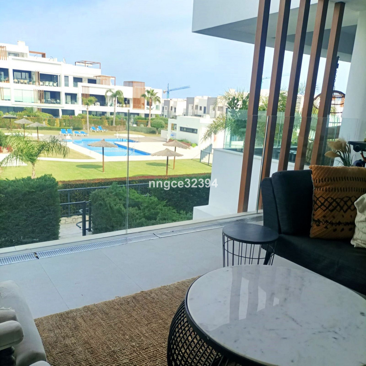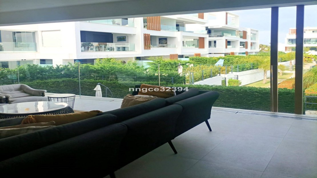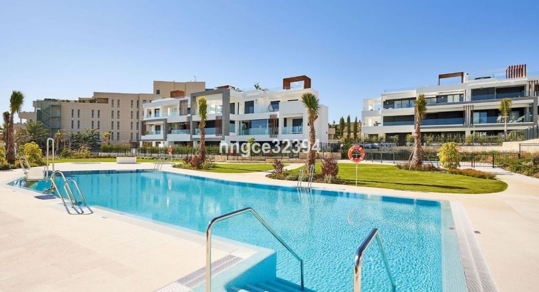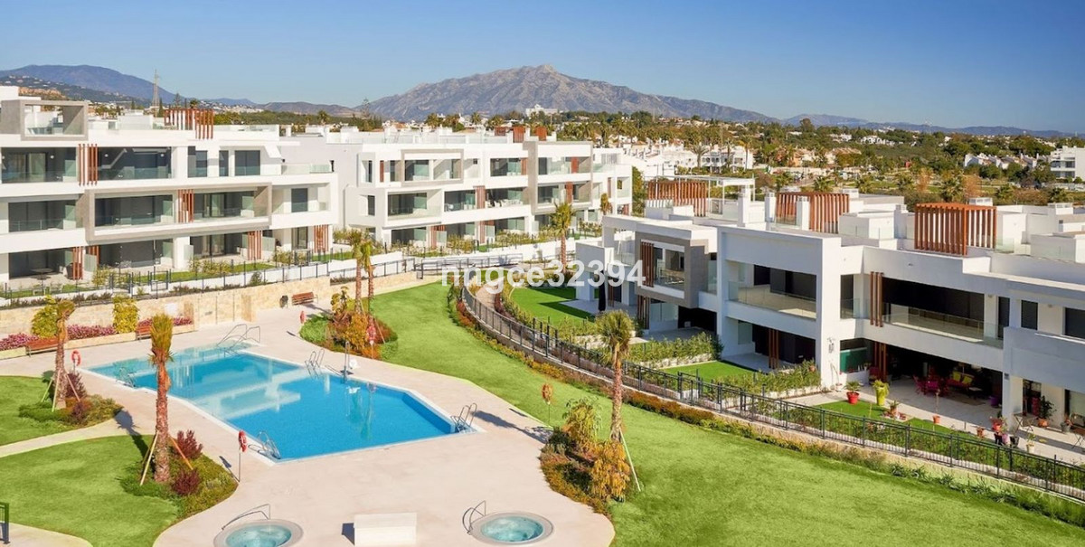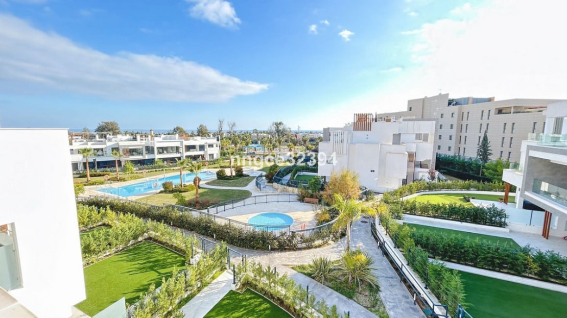 Nestled in a newer exclusive community along Marbella's prestigious New Golden Mile, this newer three-bedroom, two-bathroom residence offers the epitome of modern, avant-garde living. A mere stroll from the beach, this luxurious apartment combines sophistication with convenience, situated within a secure, gated enclave surrounded by lush gardens and offering views of the sea, mountains, and pristine communal spaces.