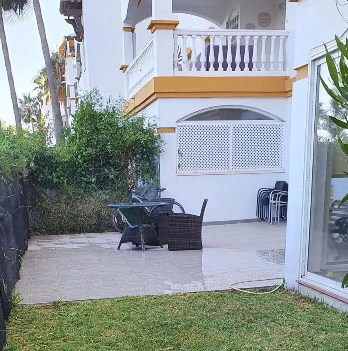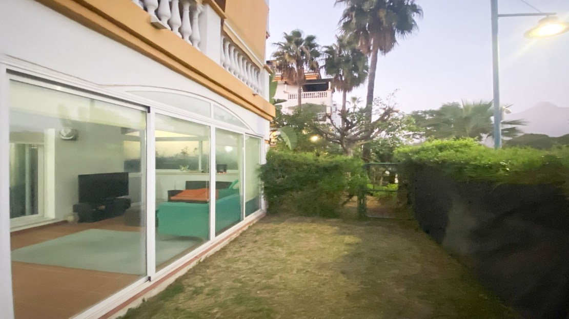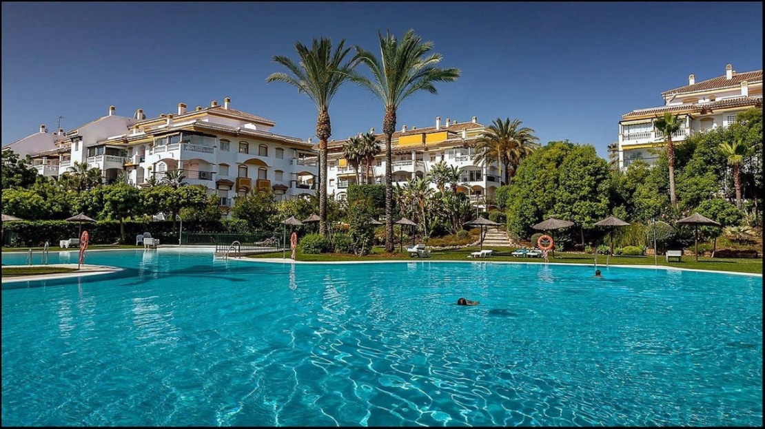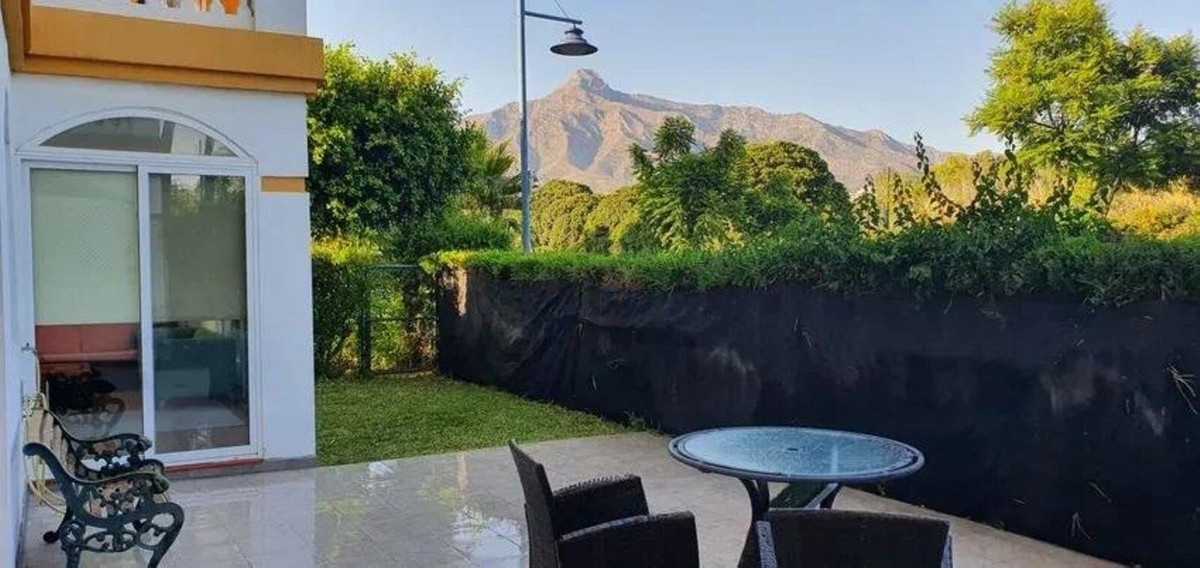 Magnificent apartment with private garden in one of the most sought after developments in Marbella, in the area of Nueva Andalucia and within walking distance of Puerto Banus.