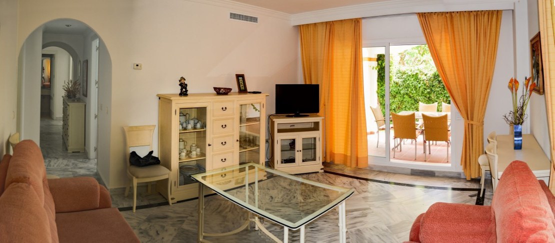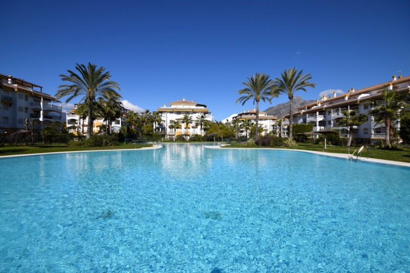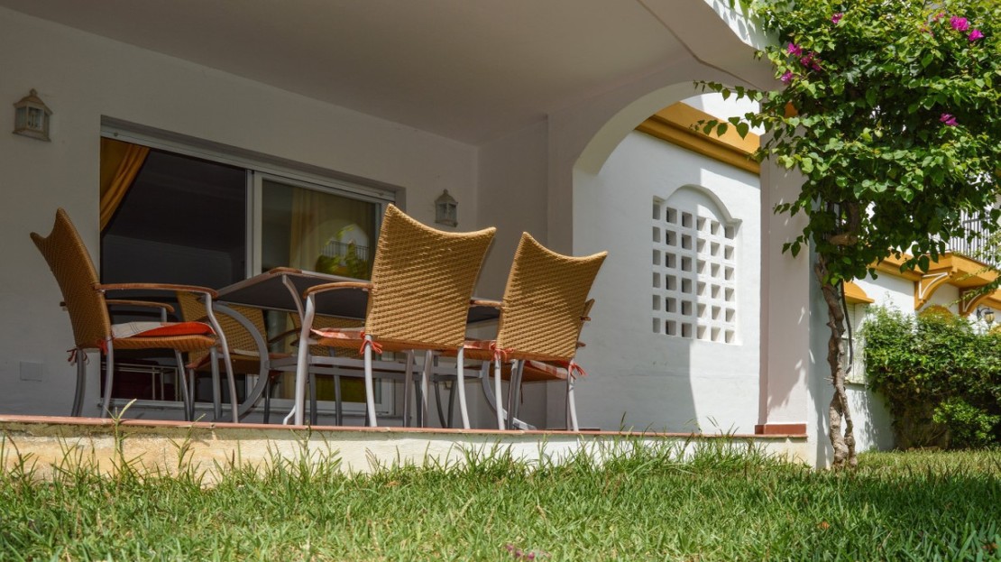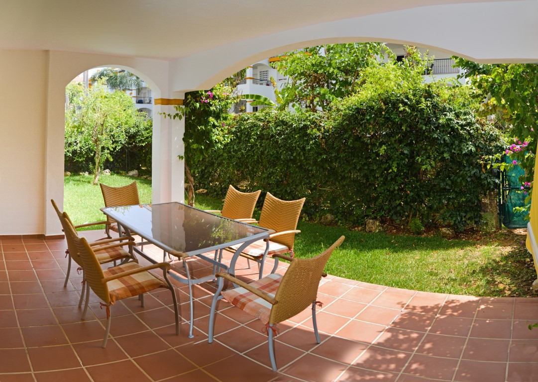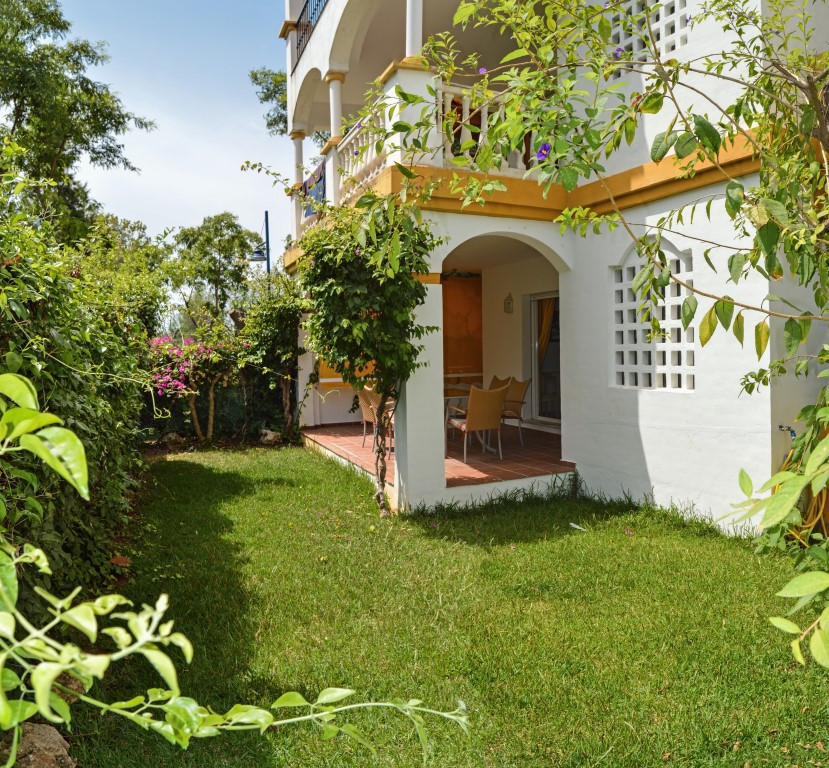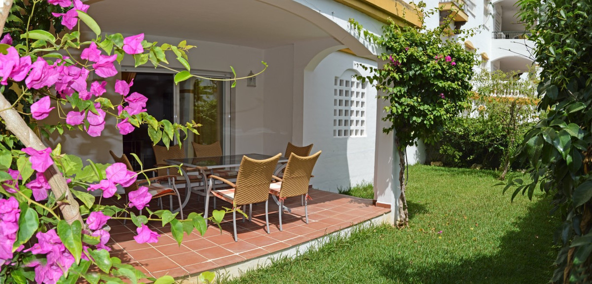 Excellent ground floor apartment in a prestigious development in Puerto Banús, Costa del Sol. South facing with a small private garden.