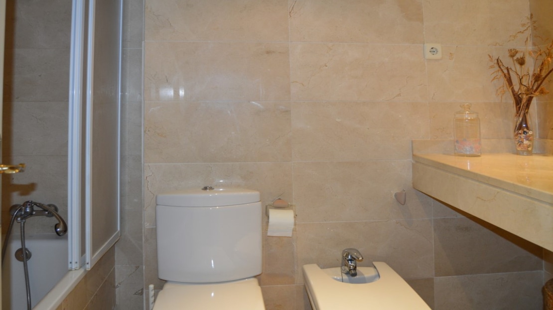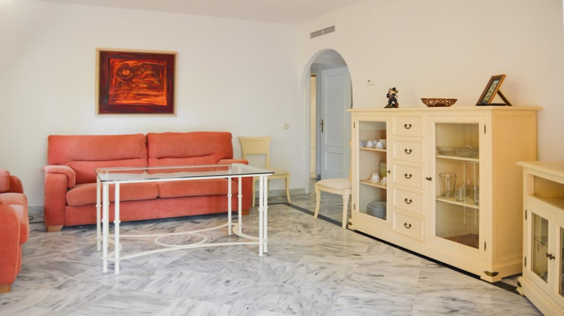 The apartment is fully furnished and in perfect condition. It has hot and cold air conditioning, marble floors and an intercom. The community has beautiful well-kept gardens, swimming pool and tennis/padel court. The price includes an underground parking space.