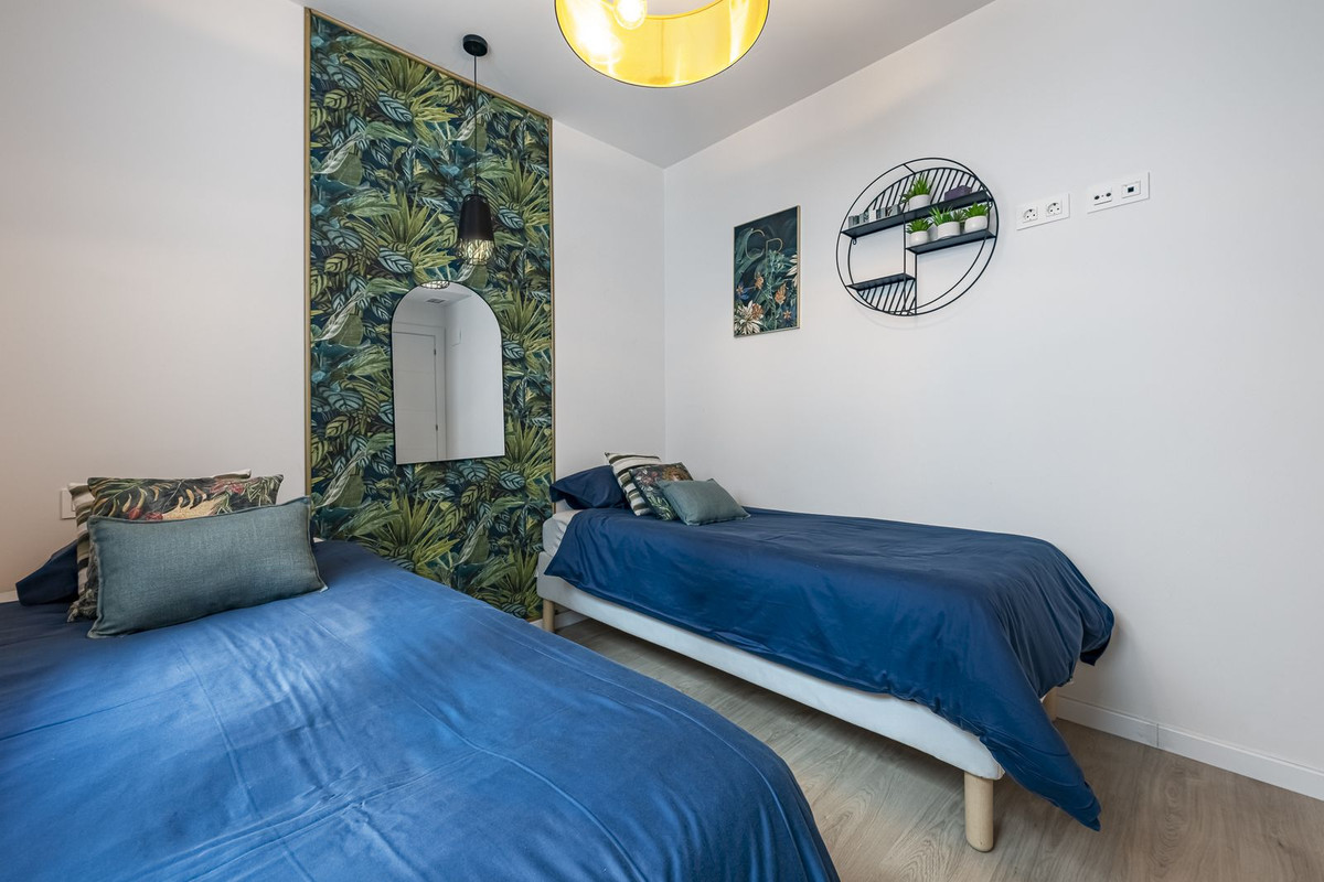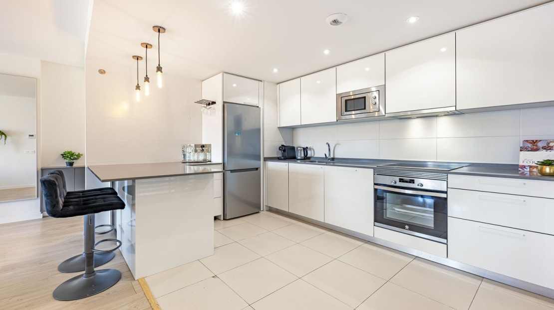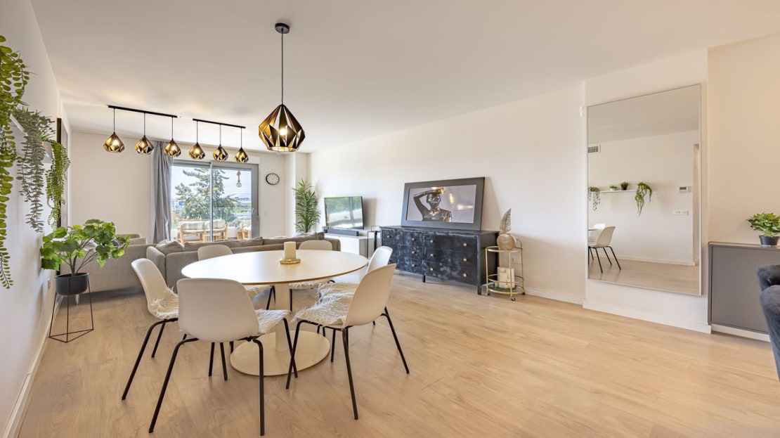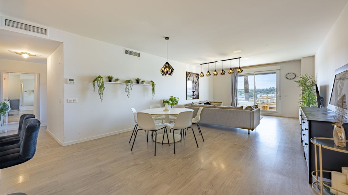 This modern apartment comes fully furnished in a modern style. The apartment has 3 bedrooms and 2 bathrooms, as well as a furnished and equipped kitchen that opens to the living room, a laundry room, and a terrace with views.