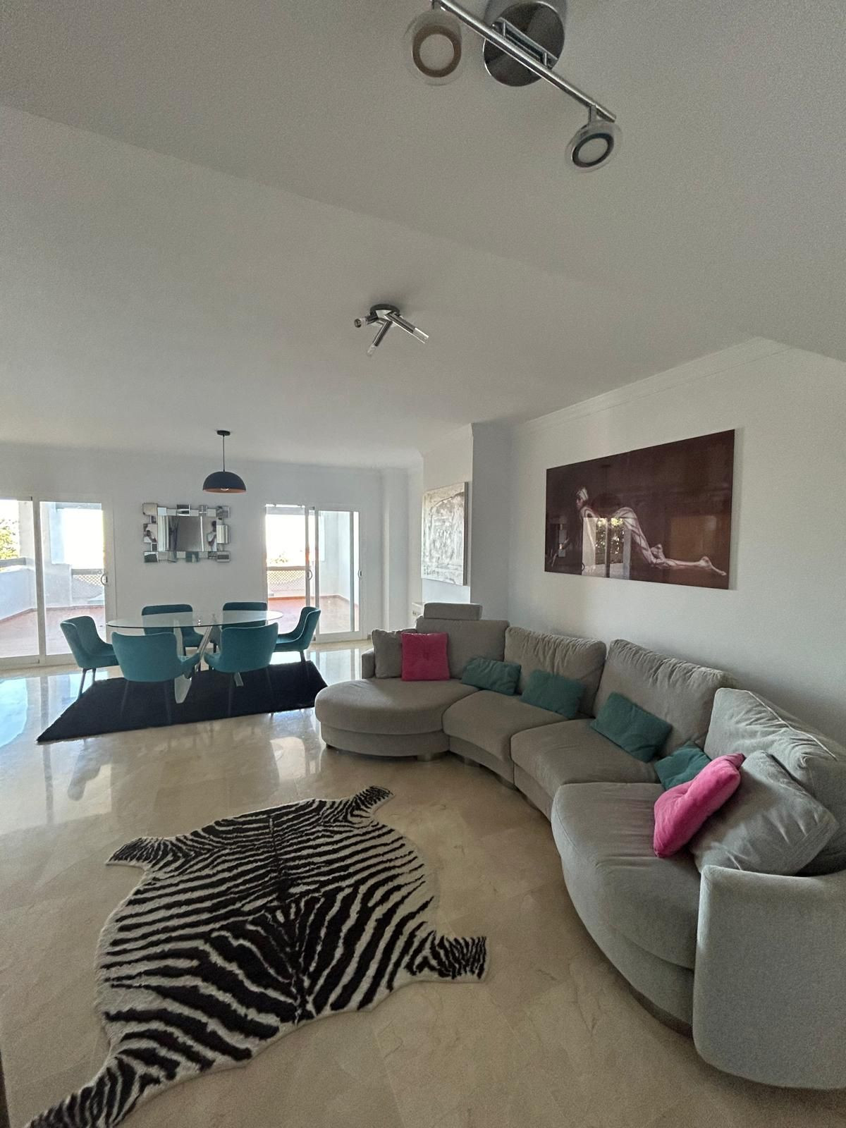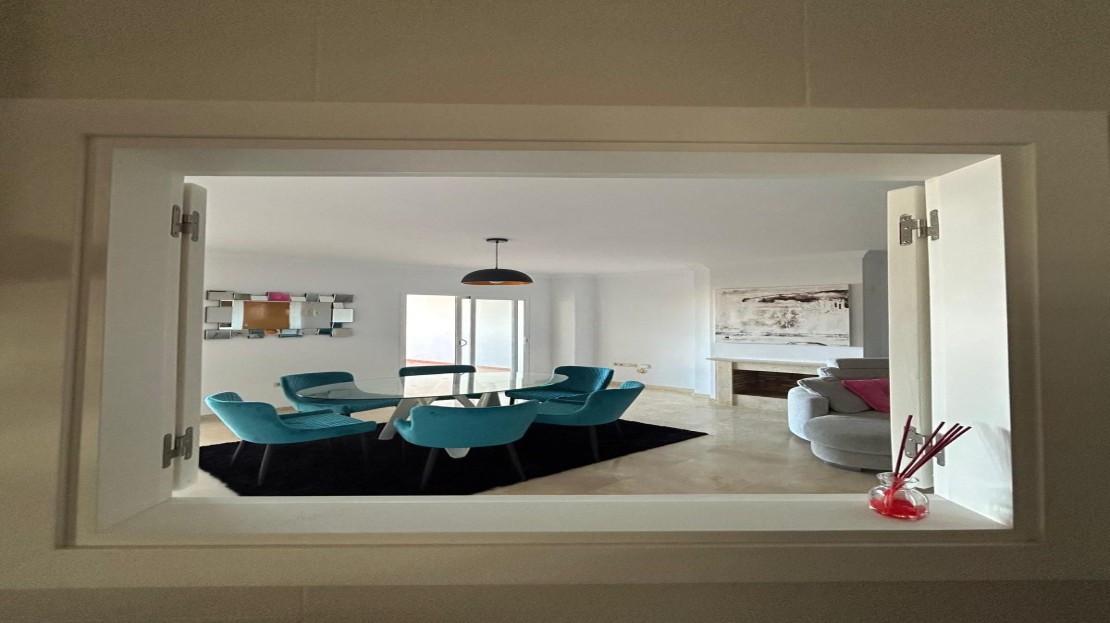 This beautiful three bedroom, 2 bathroom modern apartment is set in the beautiful area of La Mairena. Enjoy yourself with the magnificent views from its large terrace, the views covers the mountain areas, sea views and on a clear day Africa. It has a modern fitted kitchen with an adjacent laundry room. The large living area leads to its beautiful terrace. It has three large bedrooms all with fitted wardrobes and the master bedroom has an built in dressing area with an ensuite bathroom. The apartment has marble flooring throughout, wooden doors and good quality fittings throughout. The property comes with 2 garage spaces and a storeroom.