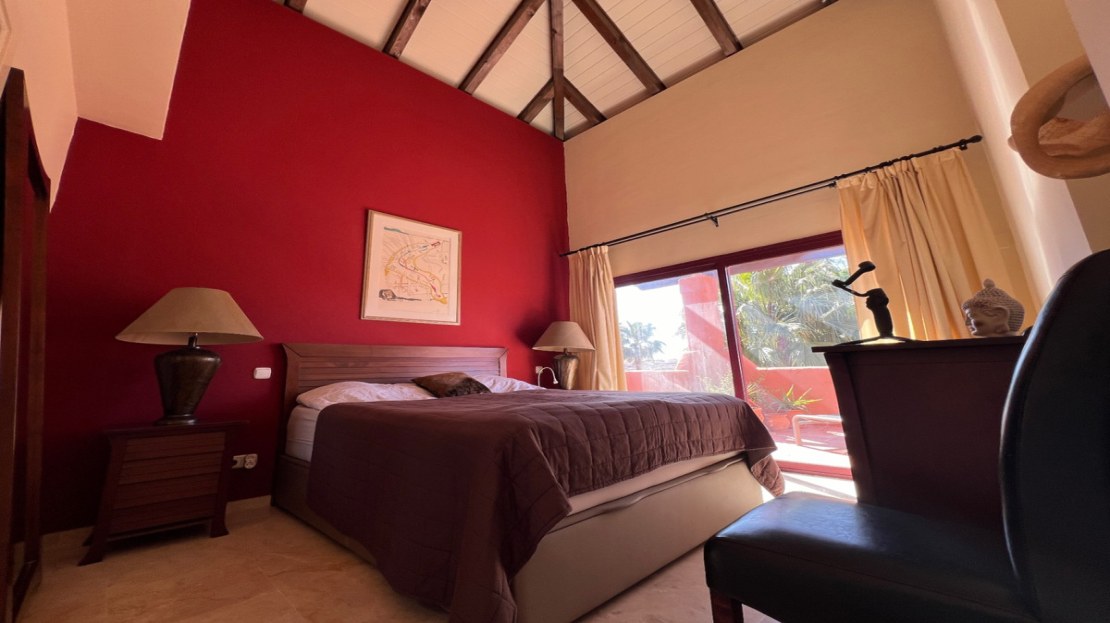 The main floor boasts an open-plan living and dining area with access to two terraces – one facing south and the other west – offering captivating views of the pool area and lovely pond below. The Kitchen has plenty of prep space and features a separate laundry facility. Two double bedrooms and two well-appointed bathrooms with bathtubs complete this level. The thoughtful design emphasizes comfort and convenience.