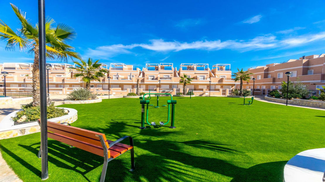 The area is surrounded by beautiful green areas, perfect for relaxation and recreation. For families, there is a playground designed for the little ones, while adults can take advantage of exercise equipment that allows for effective outdoor exercise.