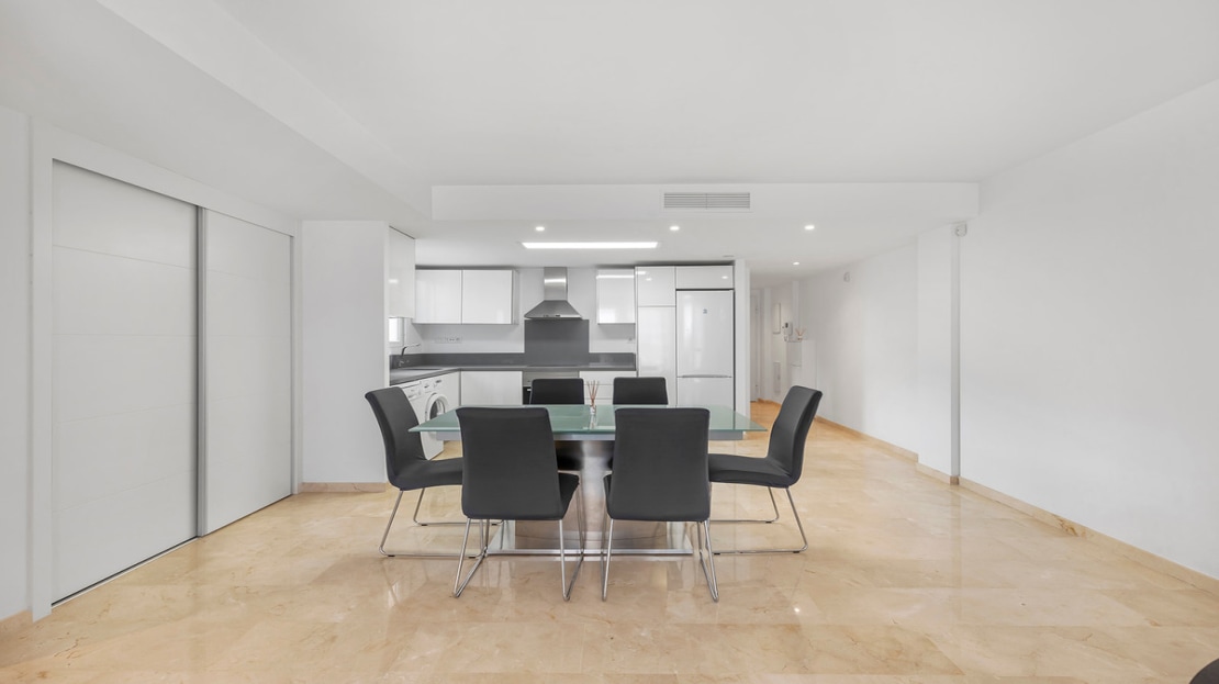 The apartment features a bright living-dining room and a fully equipped open-plan kitchen. From the living room, there is access to a 15 m² west-facing terrace, ideal for enjoying spectacular sunsets and a warm, cozy atmosphere. The apartment is sold fully furnished and ready to move in.