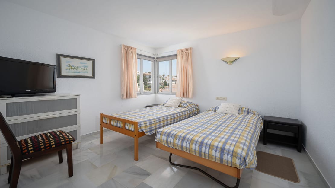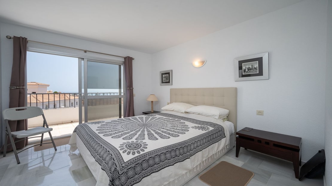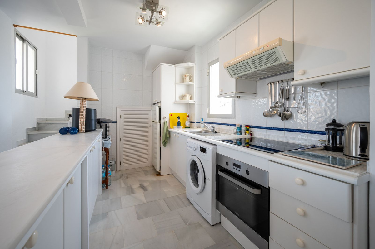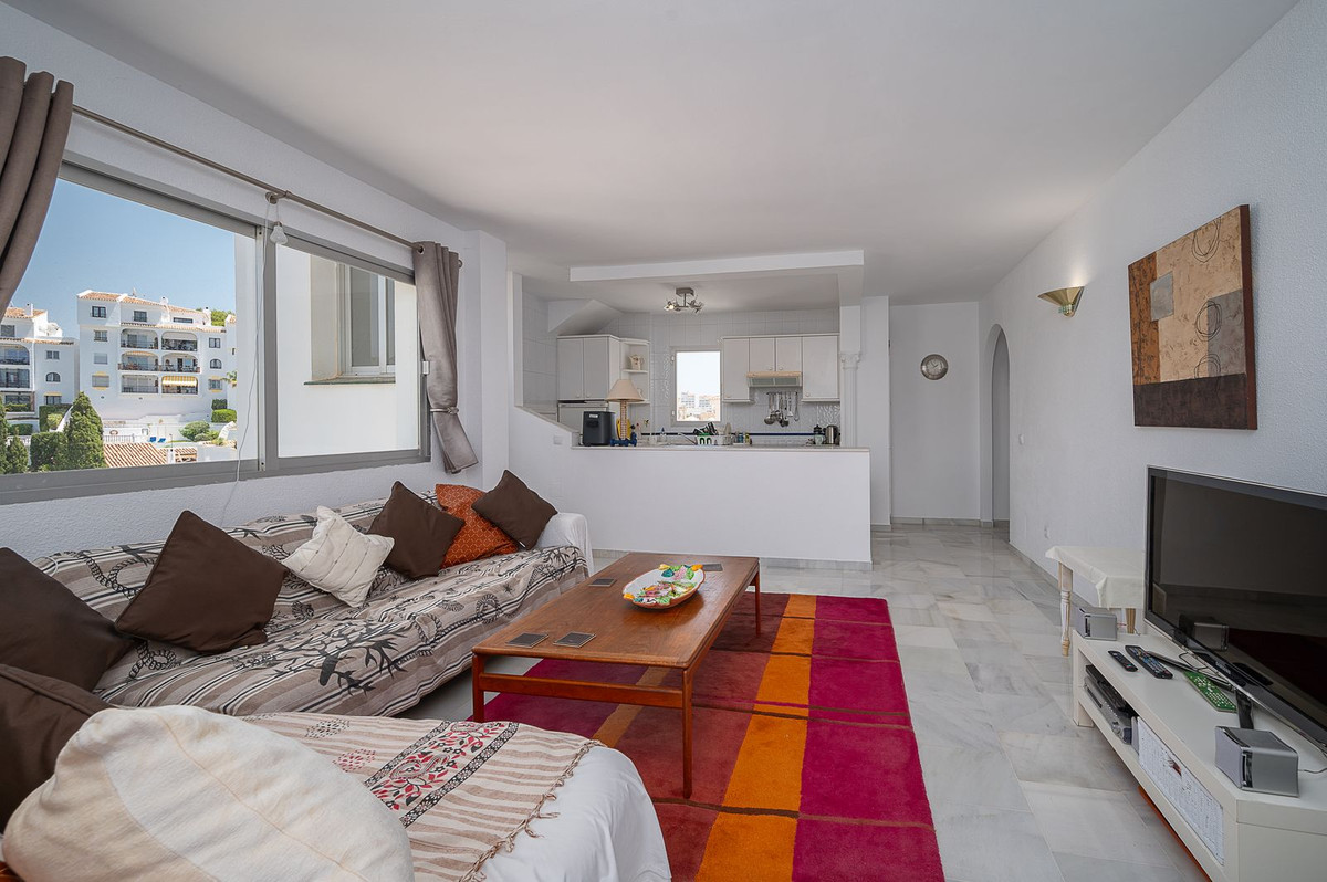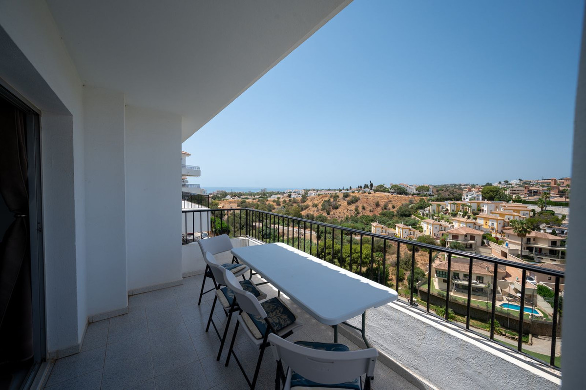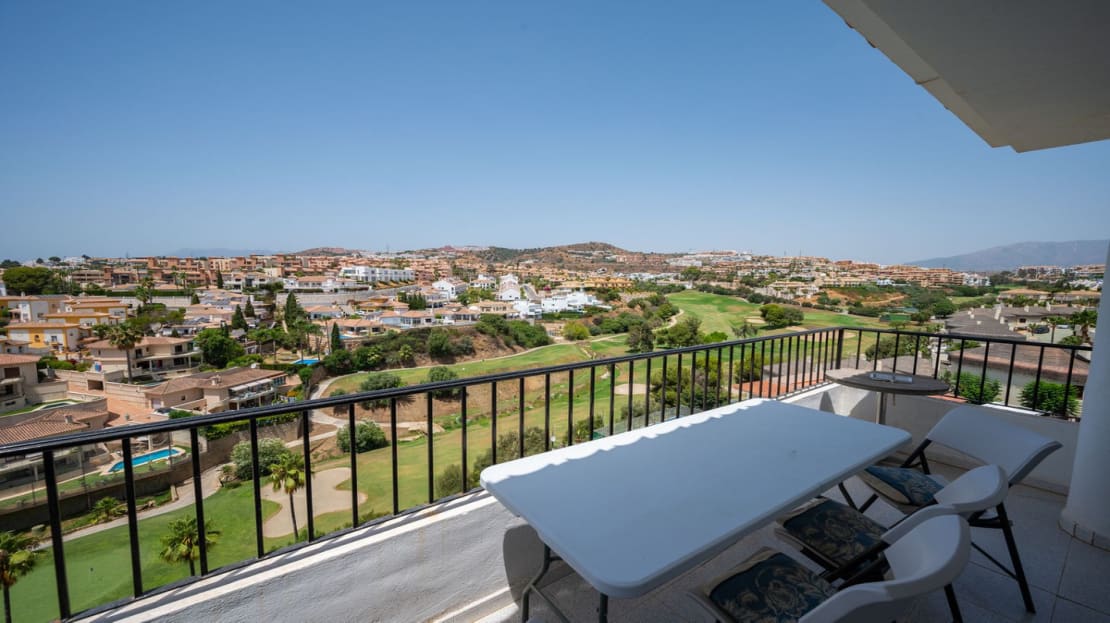 Fantastic sea and golf views from this corner, bright, duplex Penthouse! Located in the popular and pretty Andalucian style Pueblo Olivos complex which has two communal swimming pools and is located within an easy 15 minute walk to the beach, shops and restaurants at the entrance to Riviera Del Sol. This fantastic Penthouse is located on the third floor with no lift. On entering the property you will immediately find it bright and welcoming, on this floor you have a good size living/dining room, a fully fitted, open plan kitchen, two good sized double bedrooms and two bathrooms, one which is en suite to the master bedroom. Also on this floor there are two separate terraces facing both east and west, the east facing one has super sea views and is accessed through patio doors from the master bedroom and the second west facing terrace is accessed from the living room and has wonderful front line golf views, sea views and views down the coast to Gibraltar and over to Africa! There are stairs which lead you up to the roof top terrace. Plus at the top of the stairs there is a spacious area with windows which could be used as a third bedroom or an office! There are open communal parking spaces for owners. With access to enjoy the sun all day and all year, wonderful views, excellent location and a spacious penthouse this property must be viewed to appreciate.