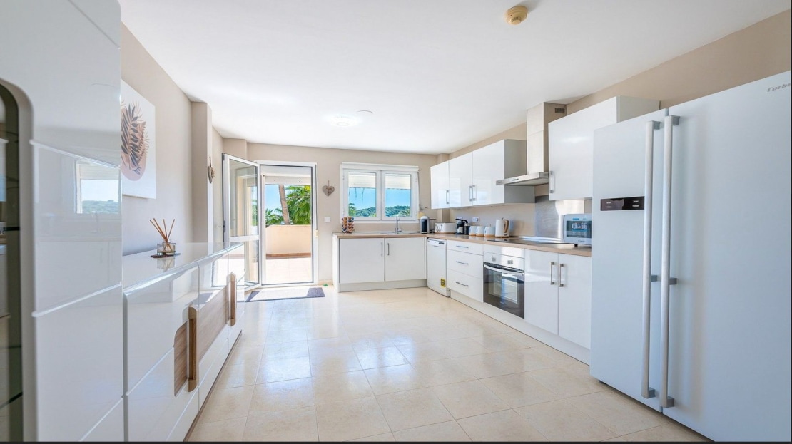 This beautifully upgraded three-bedroom apartment, located within the prestigious San Roque Club, offers a luxurious living experience with lovely panoramic views of the sea and surrounding countryside. Set within a secure, gated community with 24-hour security, the apartment is part of a complex that features well-maintained gardens and a communal pool.