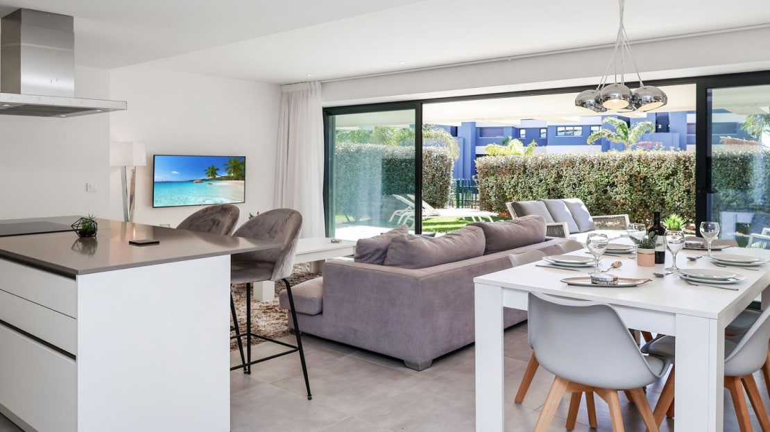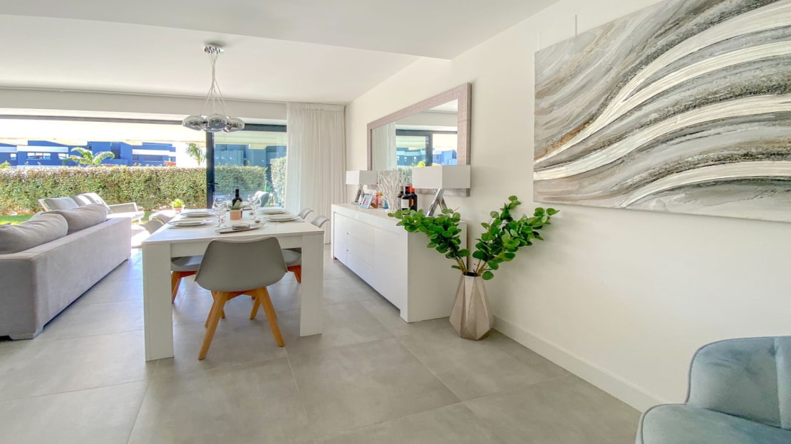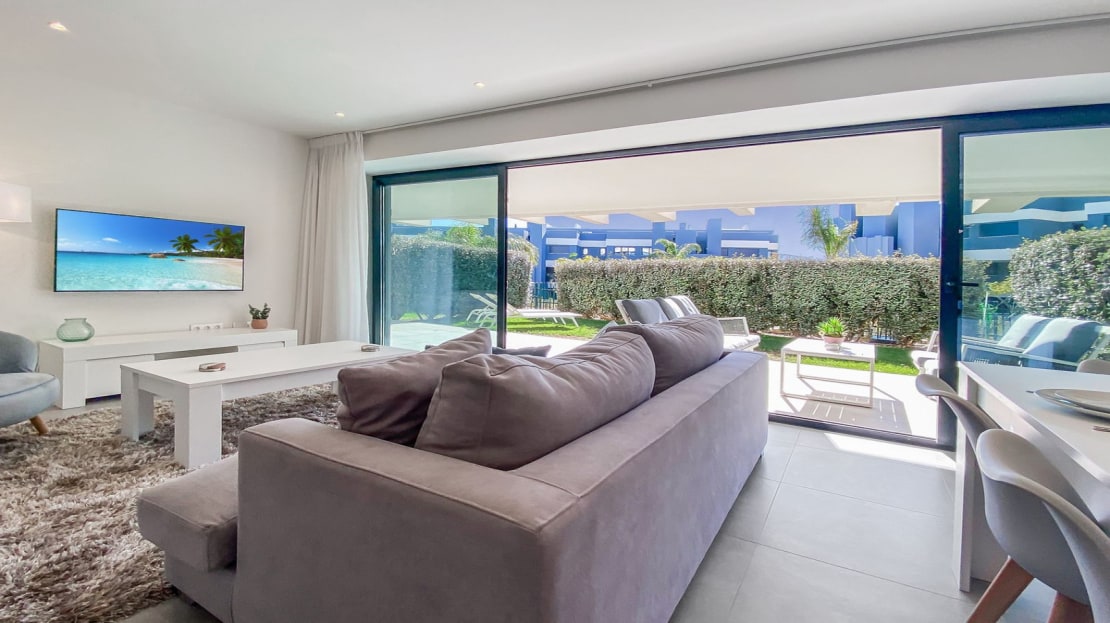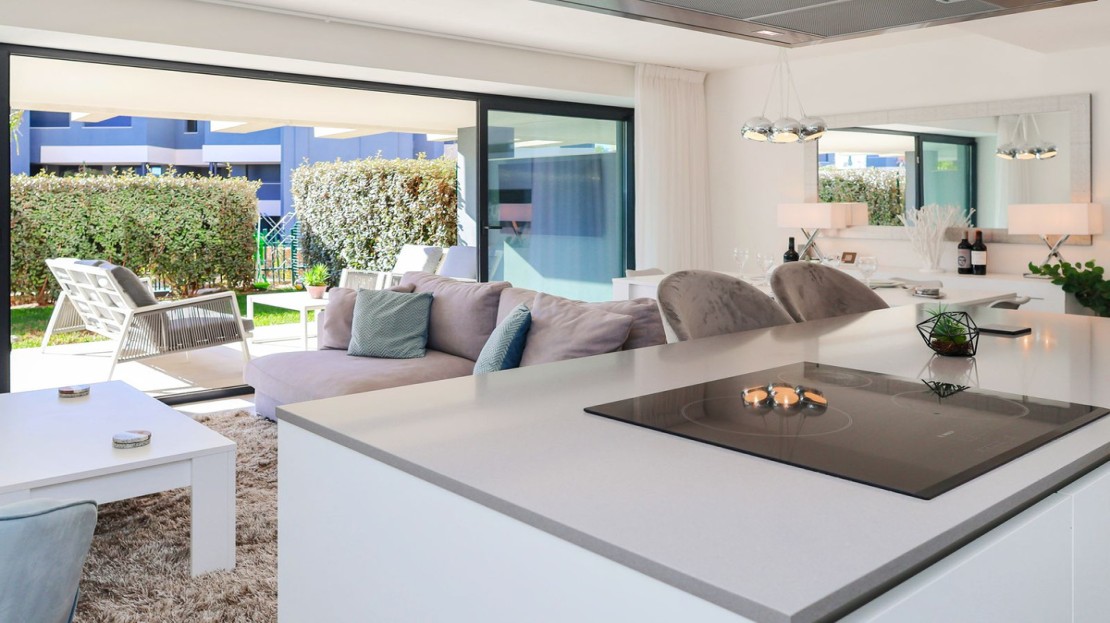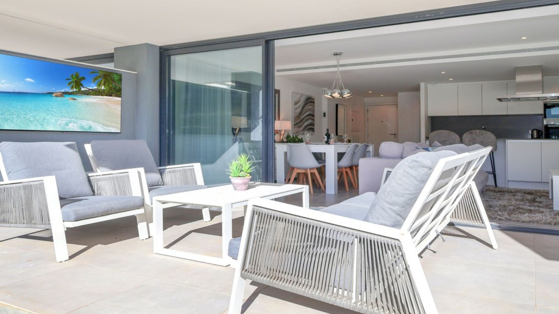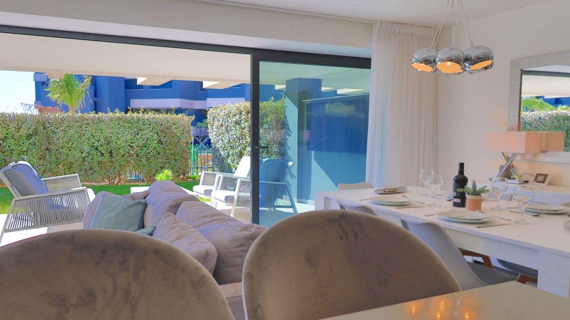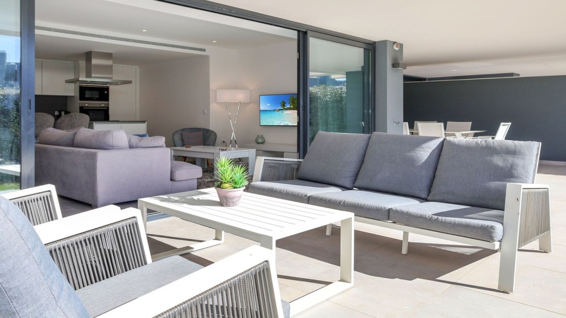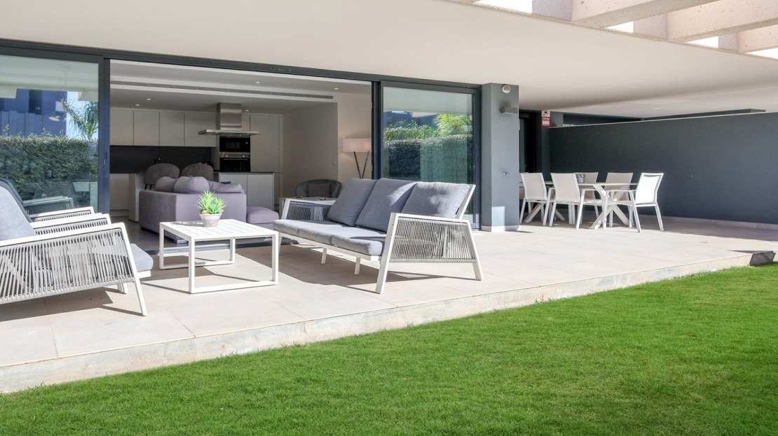 A beautiful contemporary 3 bed ground floor apartment designed by Joaquin Torres, it has a covered terrace of 32 m2 and a 47 m2 private garden.