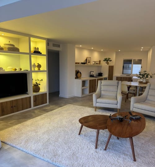 Originally designed as a four-bedroom unit, the apartment has been thoughtfully reconfigured to create a more open living space, now boasting three generous bedrooms and two well-appointed bathrooms.
