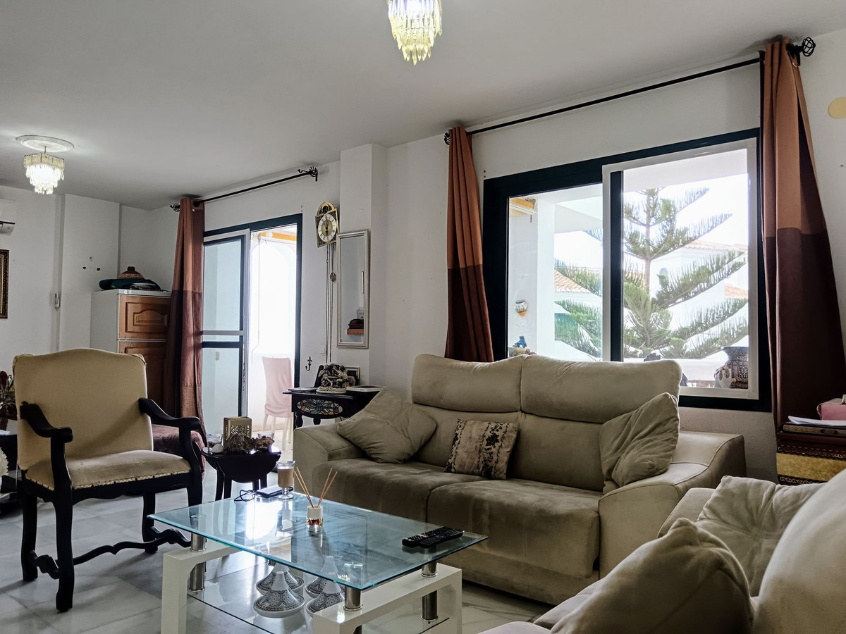 This charming apartment in Torrequebrada offers a unique opportunity to enjoy a relaxed and luxurious lifestyle by the sea. With 98 m² of built space, the property features three spacious bedrooms and two full bathrooms, ideal for families or those seeking a comfortable living space. The highlight of this apartment is its impressive 25 m² terrace, south-facing, ensuring excellent natural light throughout the day and offering panoramic sea views, perfect for relaxing and enjoying sunsets.