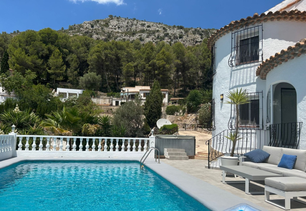 Welcome to this stunning three-bedroom villa in a tranquil urbanization, a short walk from the picturesque town of Alcalalí, Spain. Perfect for a peaceful retreat, this property blends serenity and convenience.