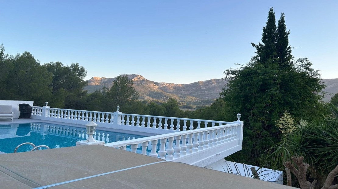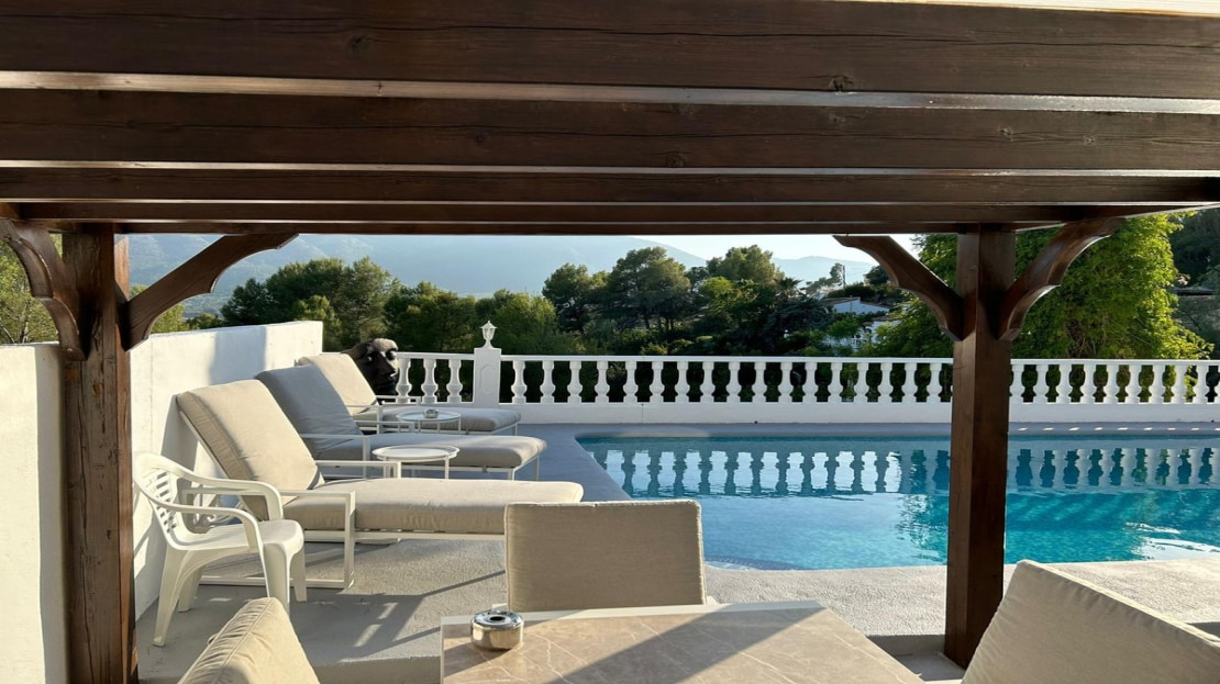 Situated on an 810 m² plot, the villa features a well-maintained 5 x 10-meter pool, recently regrouted. The inviting pool area includes a stylish gazebo and cozy sitting area, perfect for entertaining or soaking in the breathtaking mountain views.