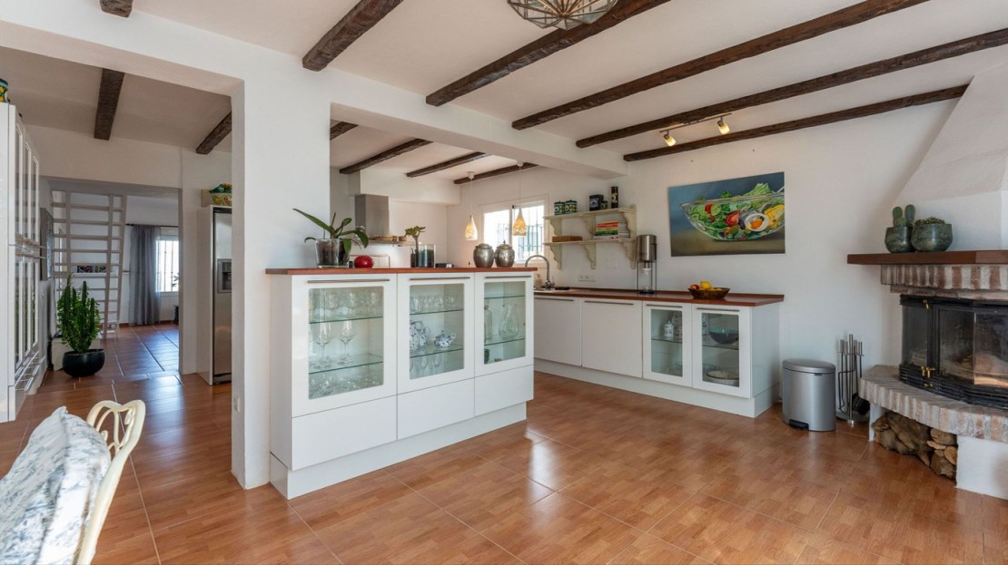 – Kitchen and Dining: The kitchen is both functional and inviting, featuring a cozy dining area and a fireplace, perfect for family gatherings. Adjacent to the kitchen is an enclosed terrace, ideal for year-round use, regardless of the weather.