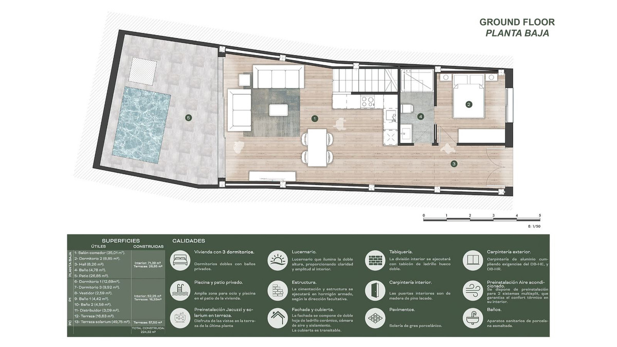 This house is equipped with pre-installations for air-conditioning, and for a jacuzzi on the roof terrace, ideal for relaxing while enjoying the view. Additionally, photovoltaic solar panels have been installed, demonstrating a commitment to energy efficiency and the use of renewable energy sources.