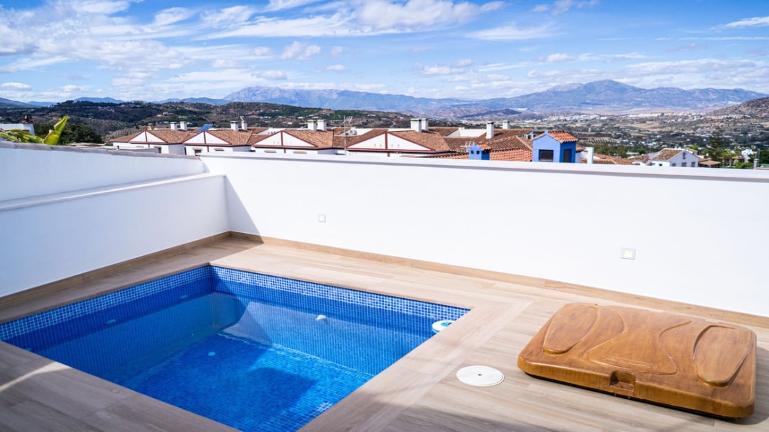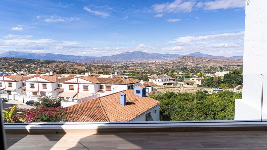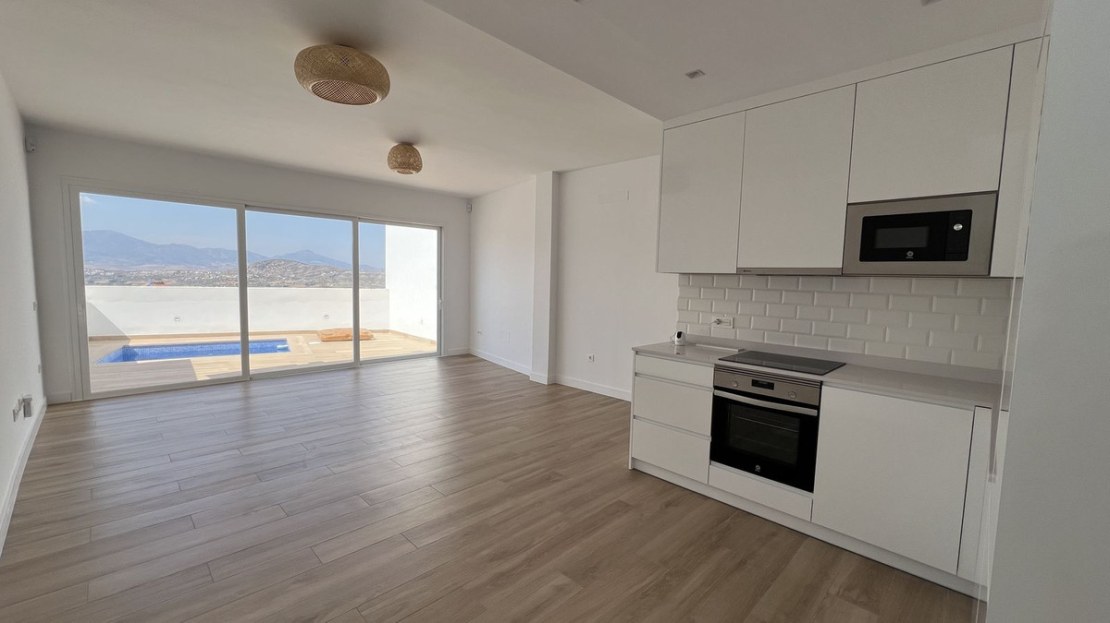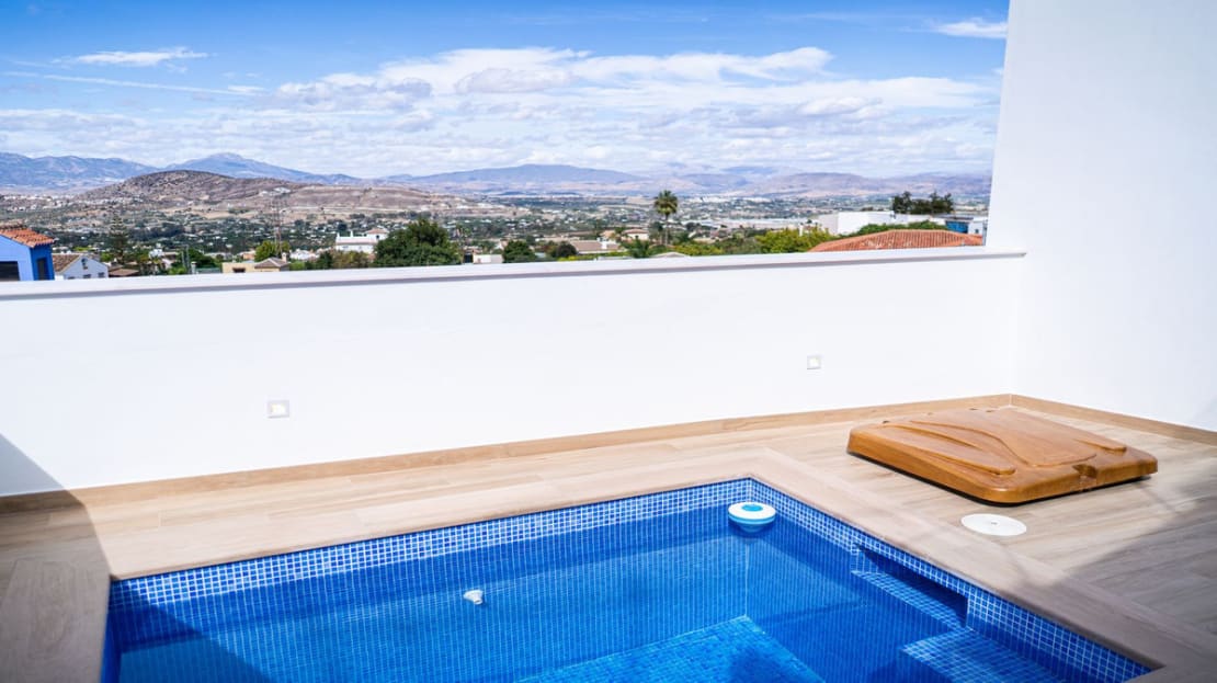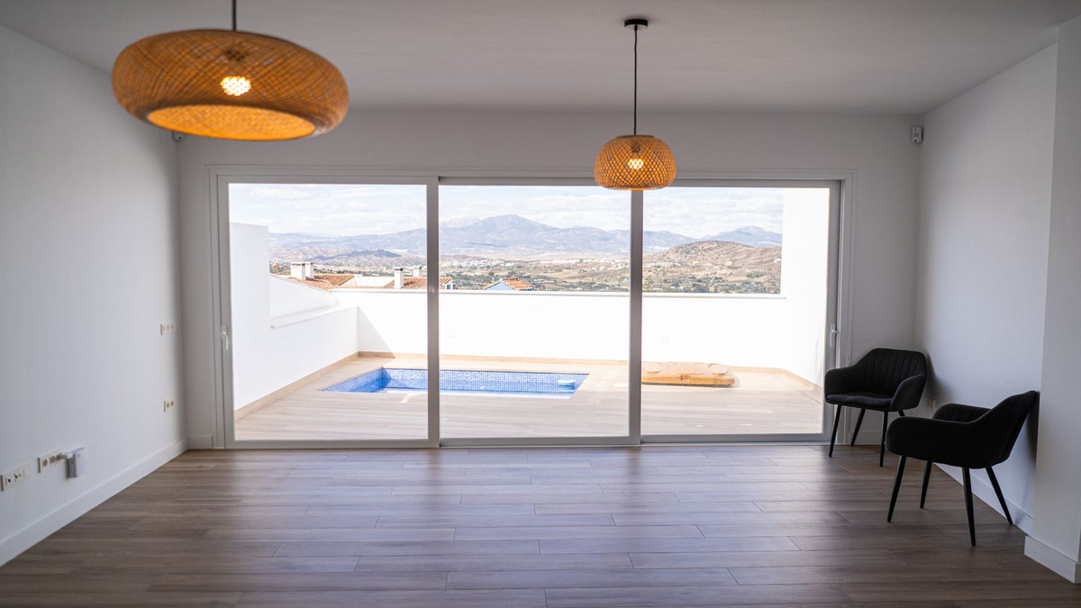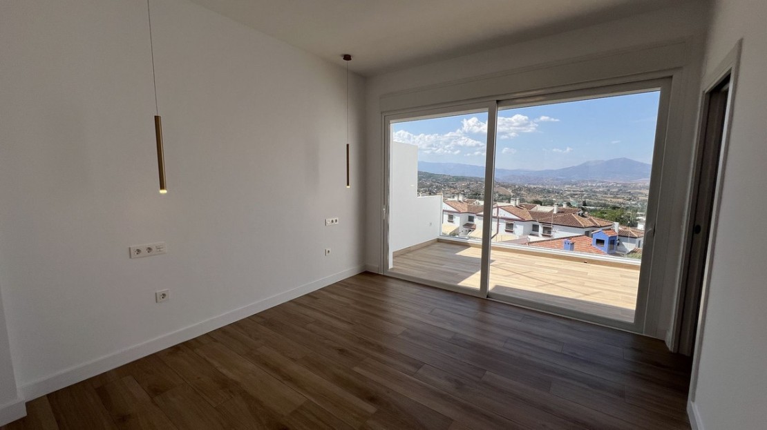 As soon as you step inside, your eyes will be drawn to the view of the valley before catching sight of a fully equipped modern open kitchen, featuring a Silestone worktop, offering both functionality and elegance. Adjacent to the kitchen, a spacious living room opens onto a terrace with breathtaking views of the valley, plus a swimming pool to cool off during hot summer days. At this level, you will also find a bedroom with en-suite bathroom.