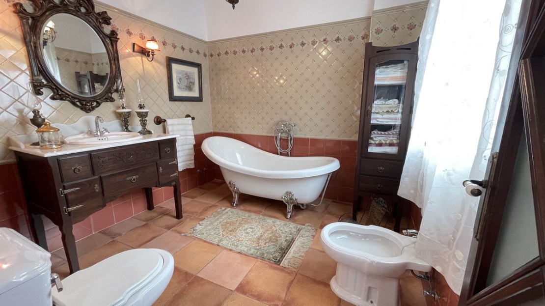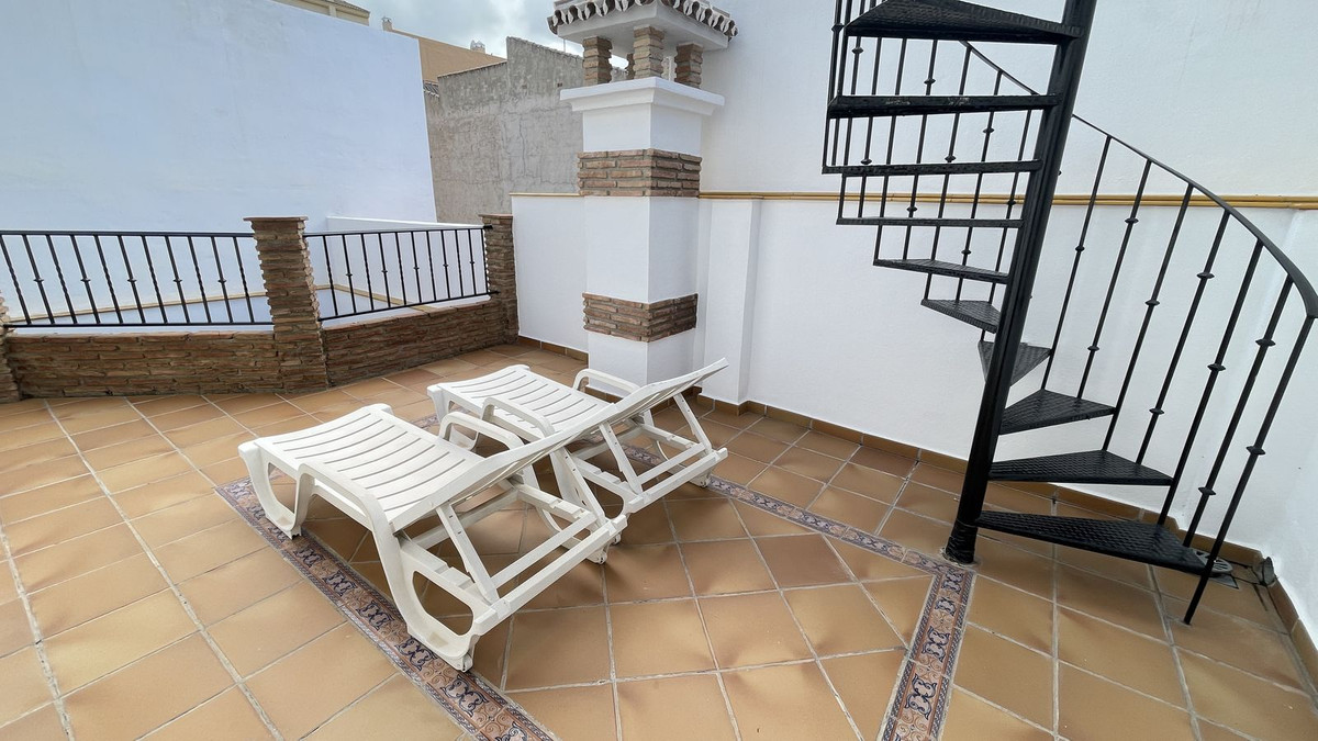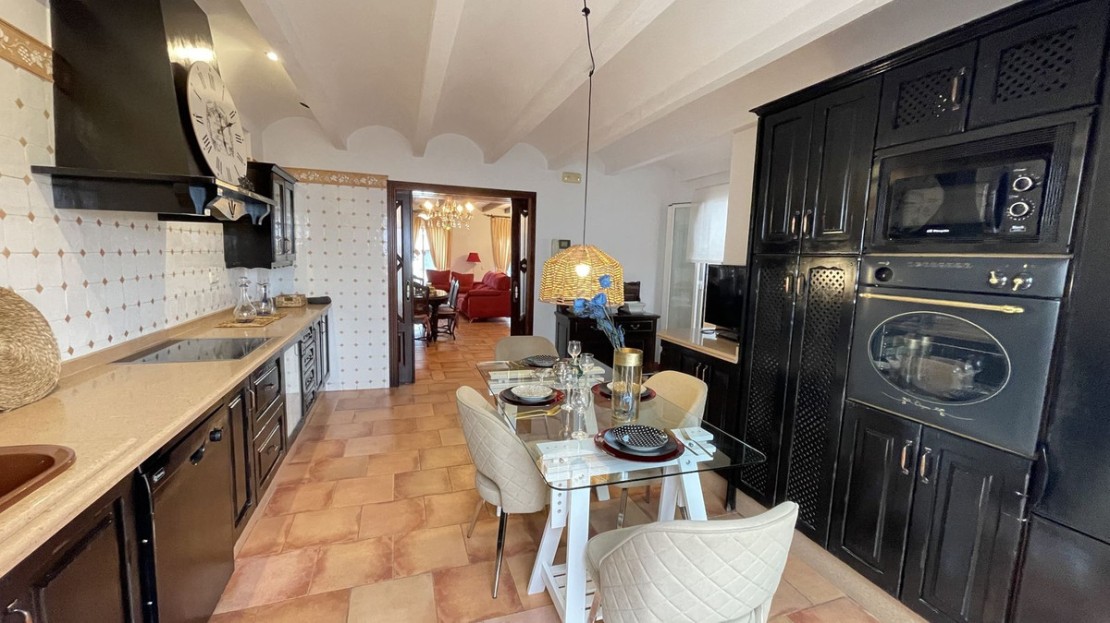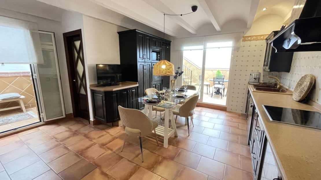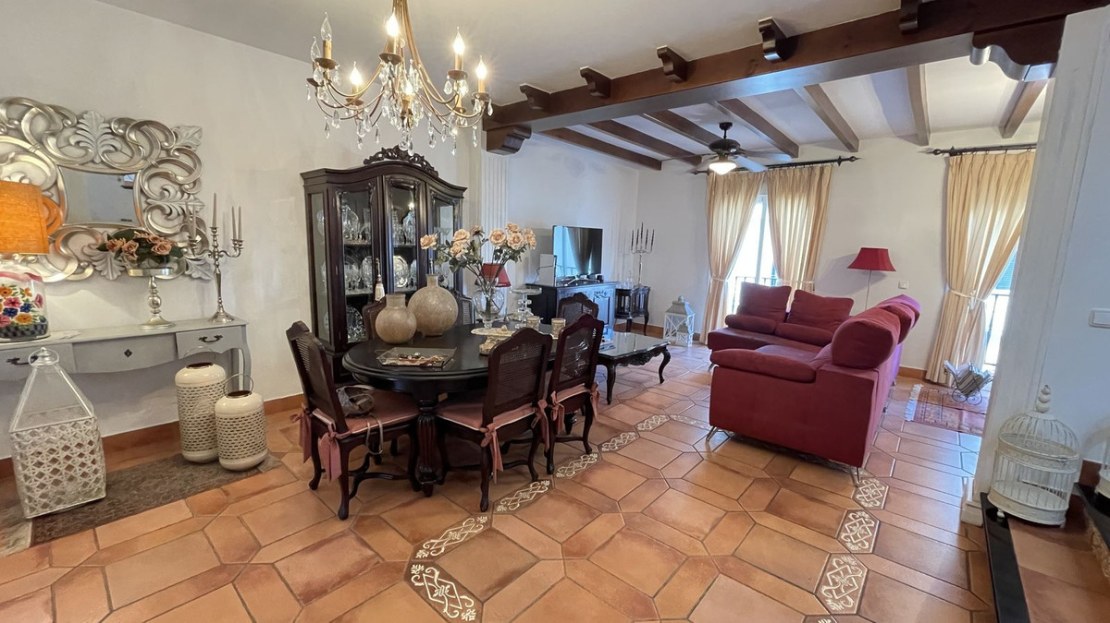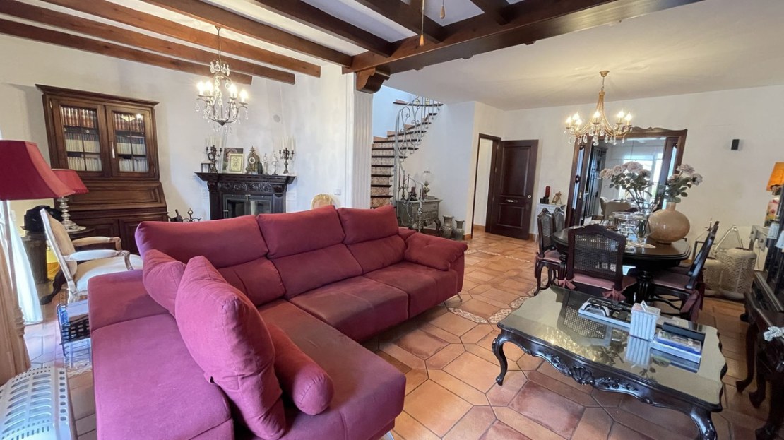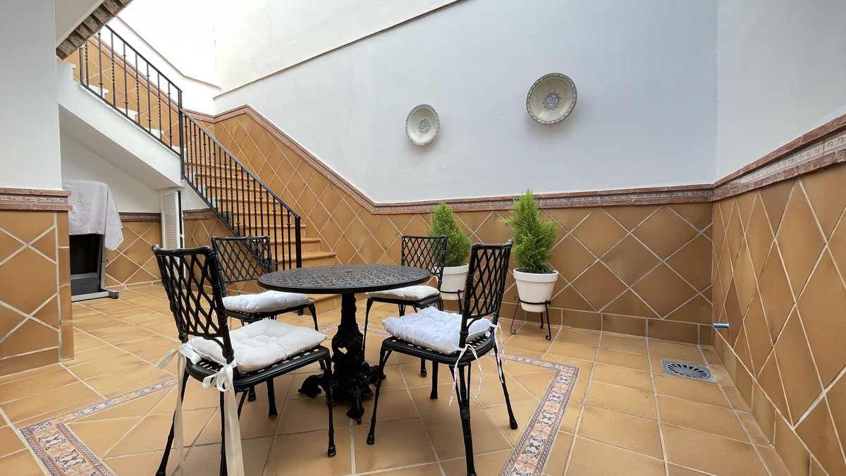 First Floor: Magnificent wooden Baroque style door welcomes you into the home, whilst the entrance hall leads to a homely living room with a lovely fireplace. To the right is a bright spacious fully-fitted kitchen with dining area that accesses a nice interior patio with a spiral staircase leading to the roof terrace. There is also a shower room on this floor.