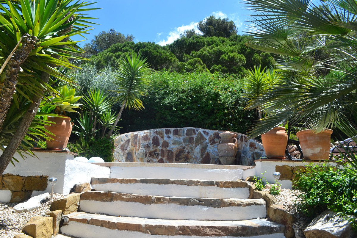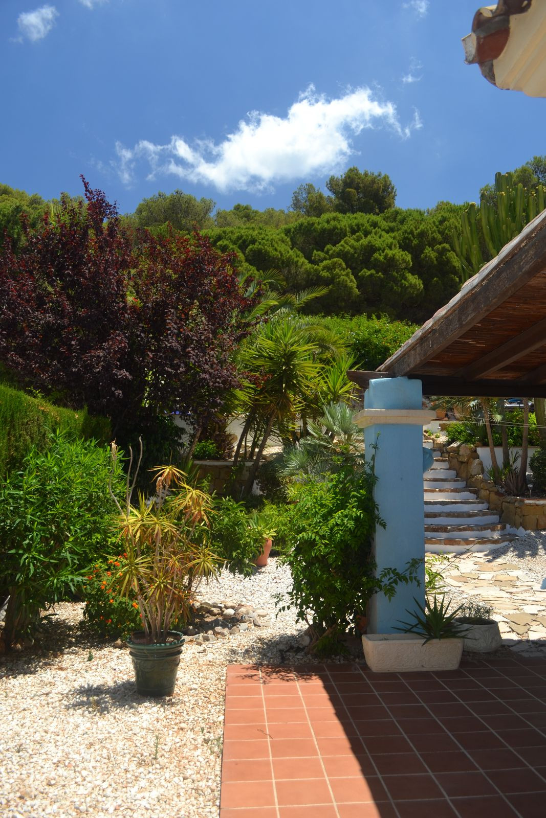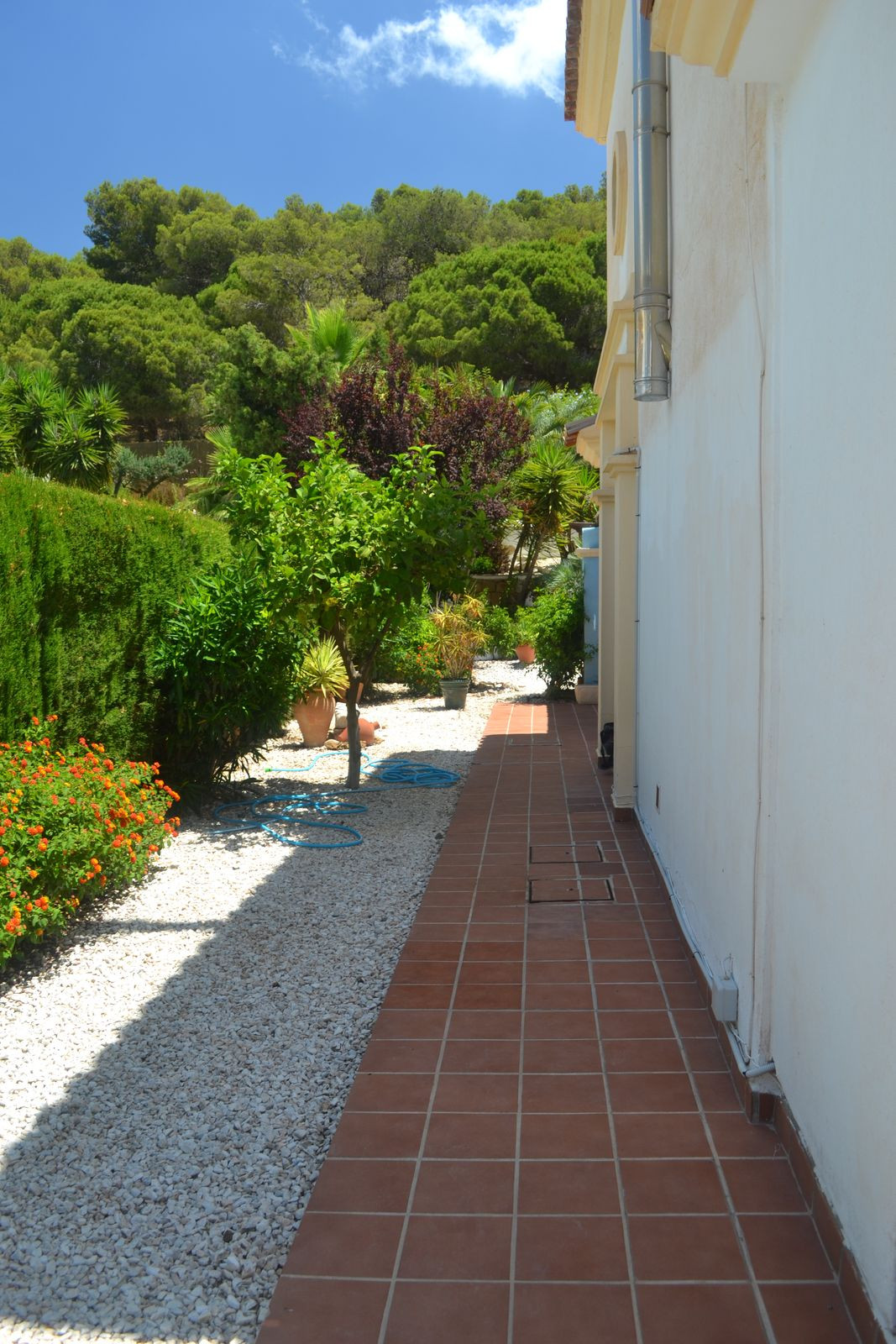 Outside around the back you have a nice covered terrace with bbq area and storage room, nice well maintained and easy maintenance garden with steps up to the plunge pool and seating areas.