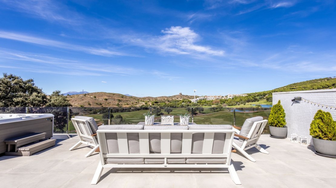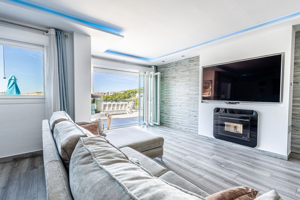 The scenery from all rooms is attractive. Of note are the staggering views from the primary bedroom suite, second bedroom, living room and terrace all overlooking the golf course, mountains, national park, all the way to the Alhaurin Castle and beyond. Truly stunning.