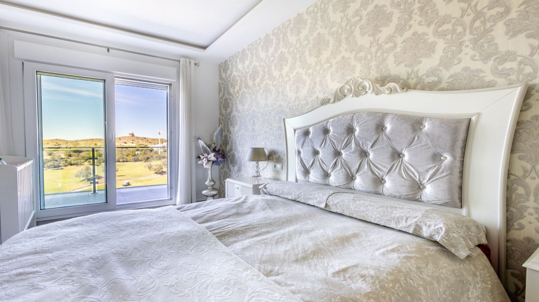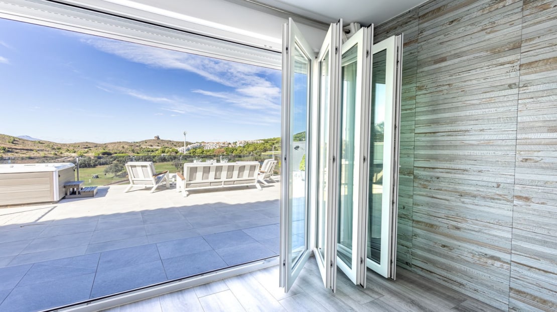 This substantial, front line golf villa is well planned and equipped and offers: three bedrooms and two and a half bathrooms, one of which is a large en-suite. An outstanding and supersized open plan dining kitchen with a large living area leads to a magnificent terrace. In addition, there is a separate laundry room and garden room, outdoor kitchen and much more. The off street and dedicated parking space is oversized, offering space for a large car and golf buggy or multiple motorcycles and is accessed by top of the range electric gates.