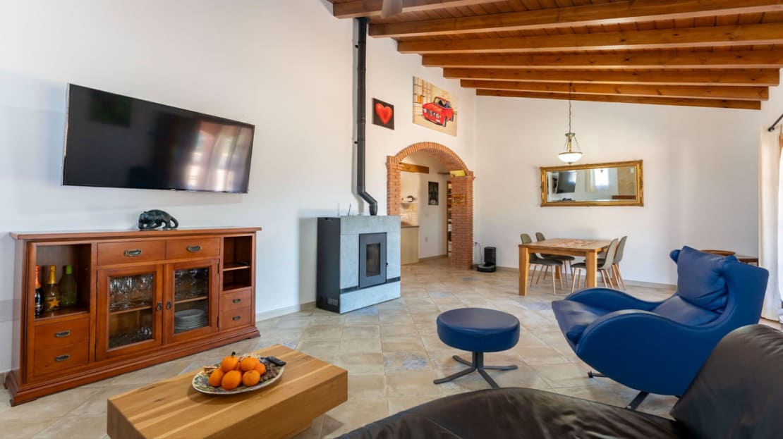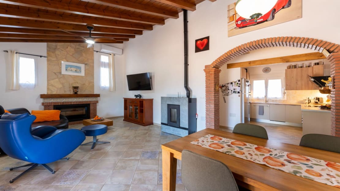 – A bright, open-plan living and dining area, featuring both a log burner and a pellet burner for cozy winter nights
