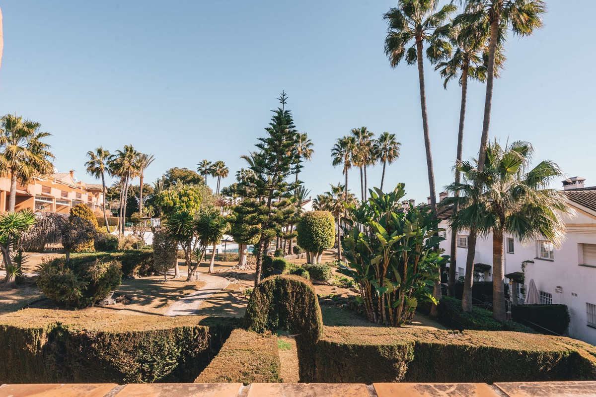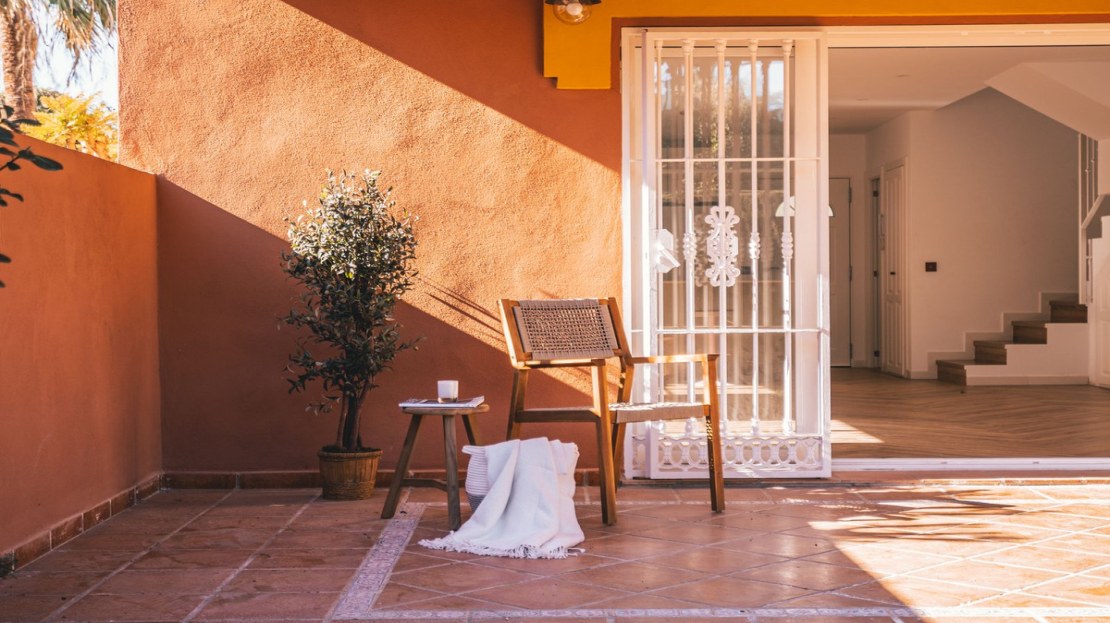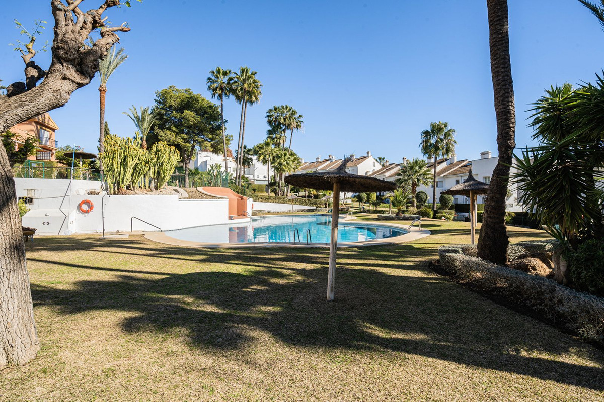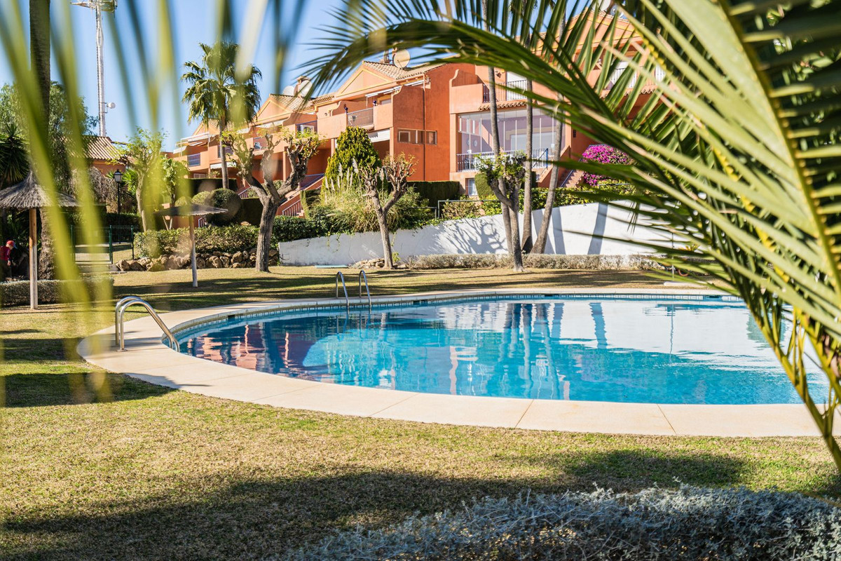 The townhouse is distributed over 2 floors, on the entrance level you are welcomed by an open plan kitchen and living room leading out to the terrace and garden. The outdoors are very private with both covered terrace and grass, and from here you can access to the community garden and pool area.