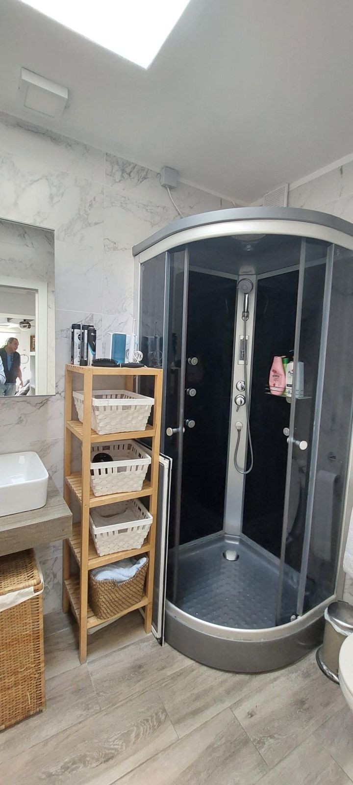 It consists of 3 bedrooms and two bathrooms. It also has a large living-dining room and fully equipped kitchen, as well as two large south facing terraces.