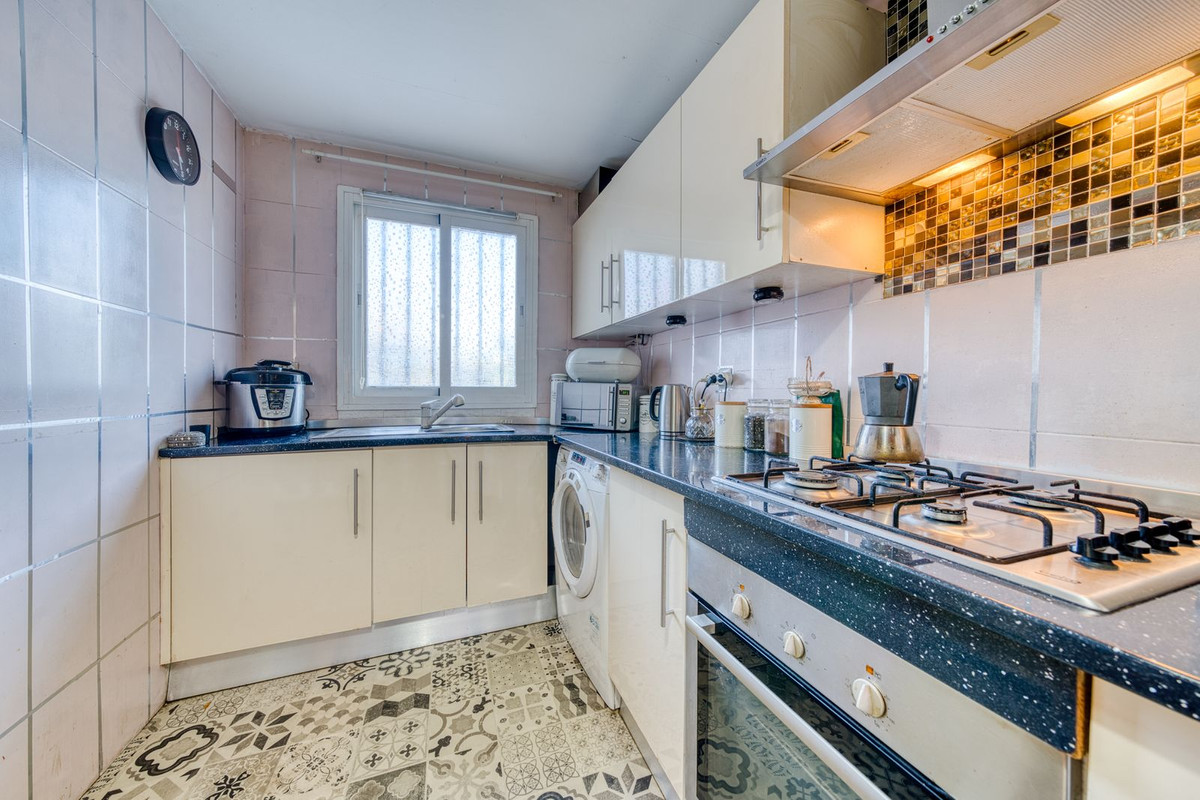 Great value three bedroom end of terrace townhouse located within a private gated community on Estepona's New Golden Mile. The property is just 3 minutes walk from all general amenities, and 17 minutes walk (1.3km) from one of the best beaches in Estepona. Situated in the desirable area of Bel Air, property offers three bedrooms, two bathrooms and a guest WC, and is split over three levels including a very private roof top terrace. The development features beautifully kept communal gardens and two swimming pools and is ideal for full time living or a rental investment. The south-facing orientation ensures plenty of natural light, while the location provides easy access to local amenities, golf courses, and the beach – all within walking distance. The property has airconditioning throughout, an open fireplace in the lounge, marble flooring throughout, and double glazed windows. A must view investment opportunity in a great location!